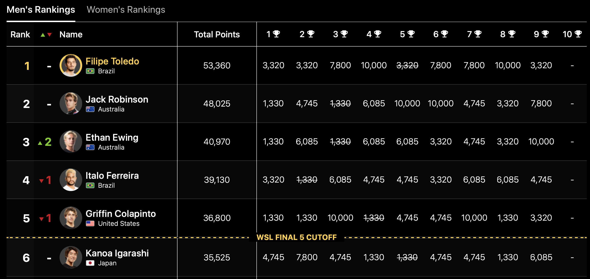 今シーズンのCT最終戦となる今大会、現在CTランキング6位の五十嵐カノアは、ここで巻き返してCTランキングトップ5入りを果たし、カリフォルニアのロウワー・トラッセルズを舞台とするワールドチャンプ決定戦”WSL FINALS”に参加することができるのか!?