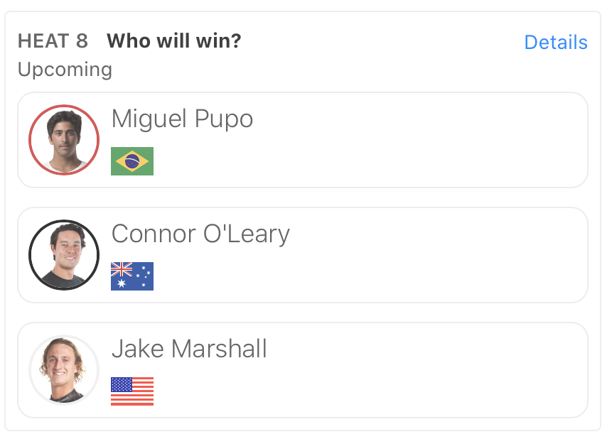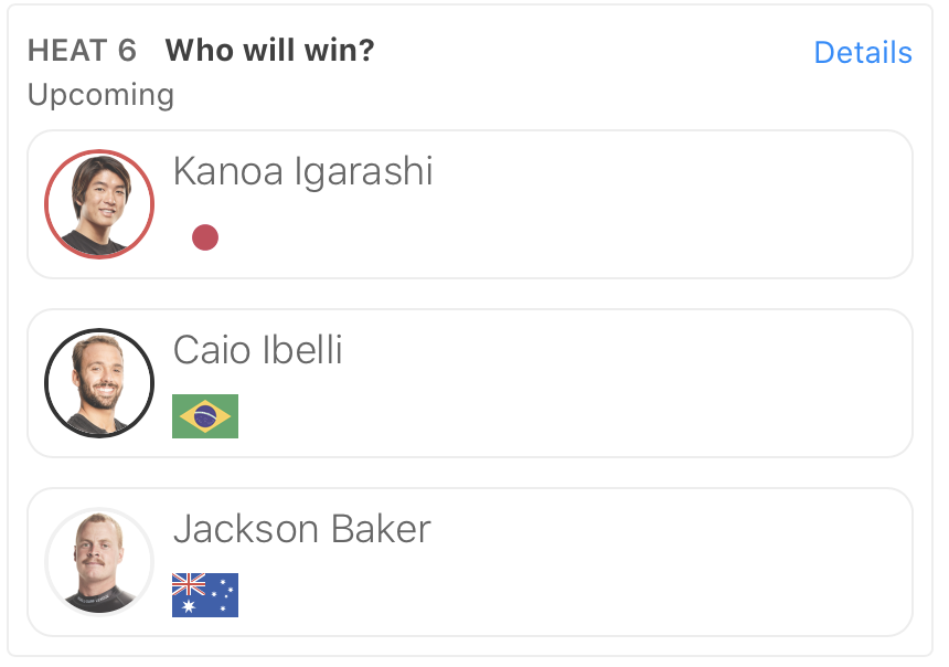 注目の日本人選手は五十嵐カノアはヒート6でCaio Ibelli、Jackson Bakerと、Connor O’learyがヒート8でMiguel Pupo、Jake Marshallと対戦予定。