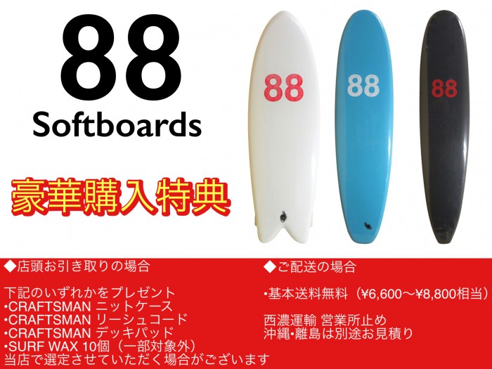 こだわりのアイテムのみを取り扱うセレクティブなサーフショップSTANDARD STOREにて、フリーダムなソフトボード・ブランドとして入手困難なほどの人気を誇る88 surfboardsを対象とした夏のスペシャル・キャンペーンが開催中!!