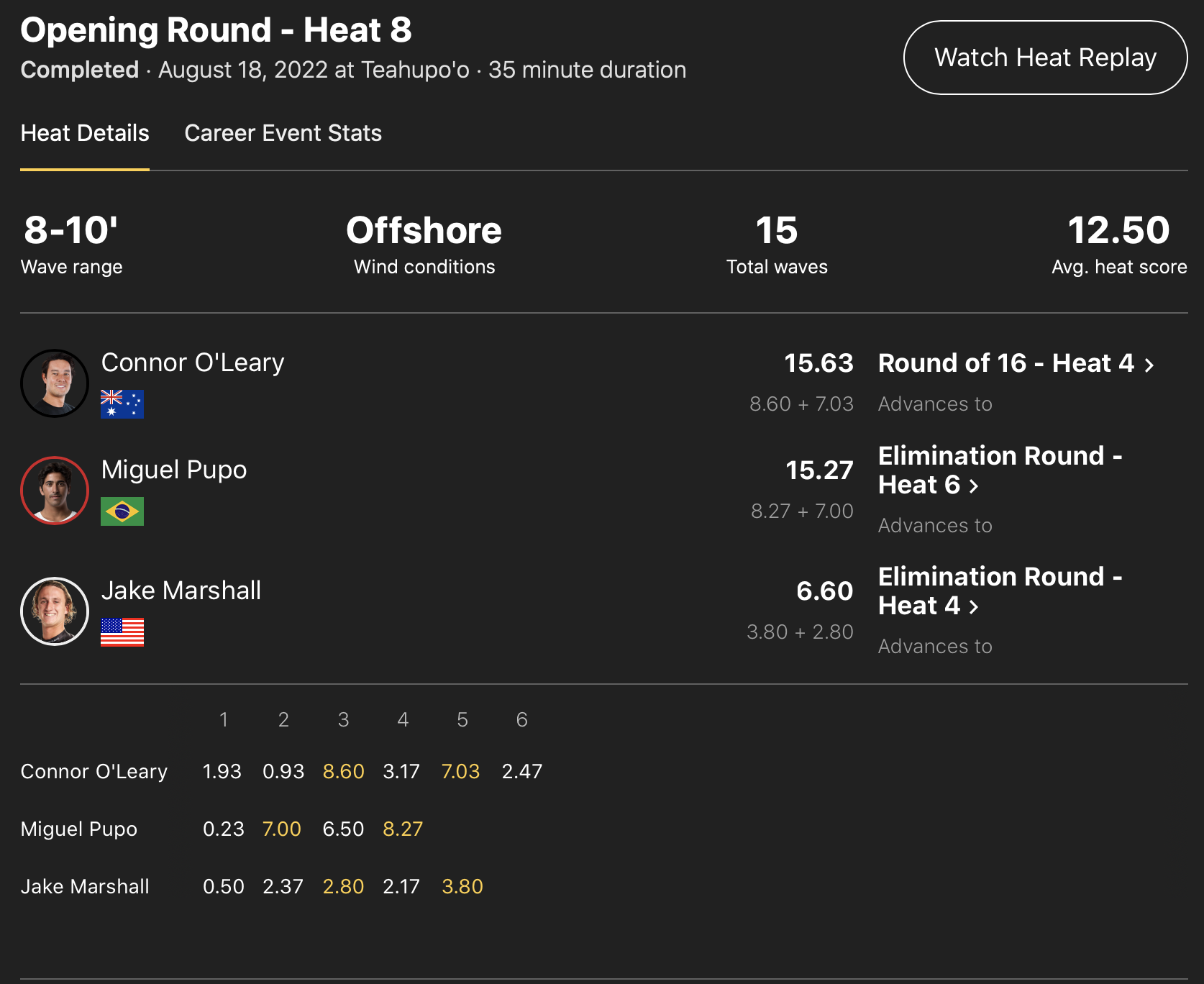 しかし、迎えたラウンドオブ16のヒート4でKelly Slaterに敗退。