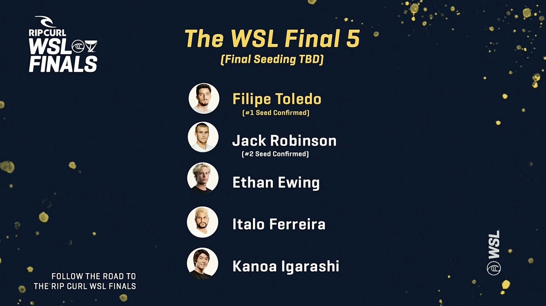 Filipe Toledo、Jack Robinson、Ethan Ewing、Italo Ferreira、そして五十嵐カノアの5名がワールドチャンプを賭けて戦う”WSL FINAL”は、カリフォルニアのロウワー・トラッセルズを舞台に、9/8(火)から9/16(金)をコンテスト期間に開催予定。