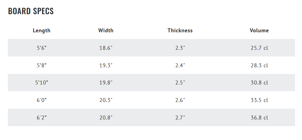 サイズは5’6″、5’8″、5’10″、6’0″、6’2″の5パターンがラインナップ。