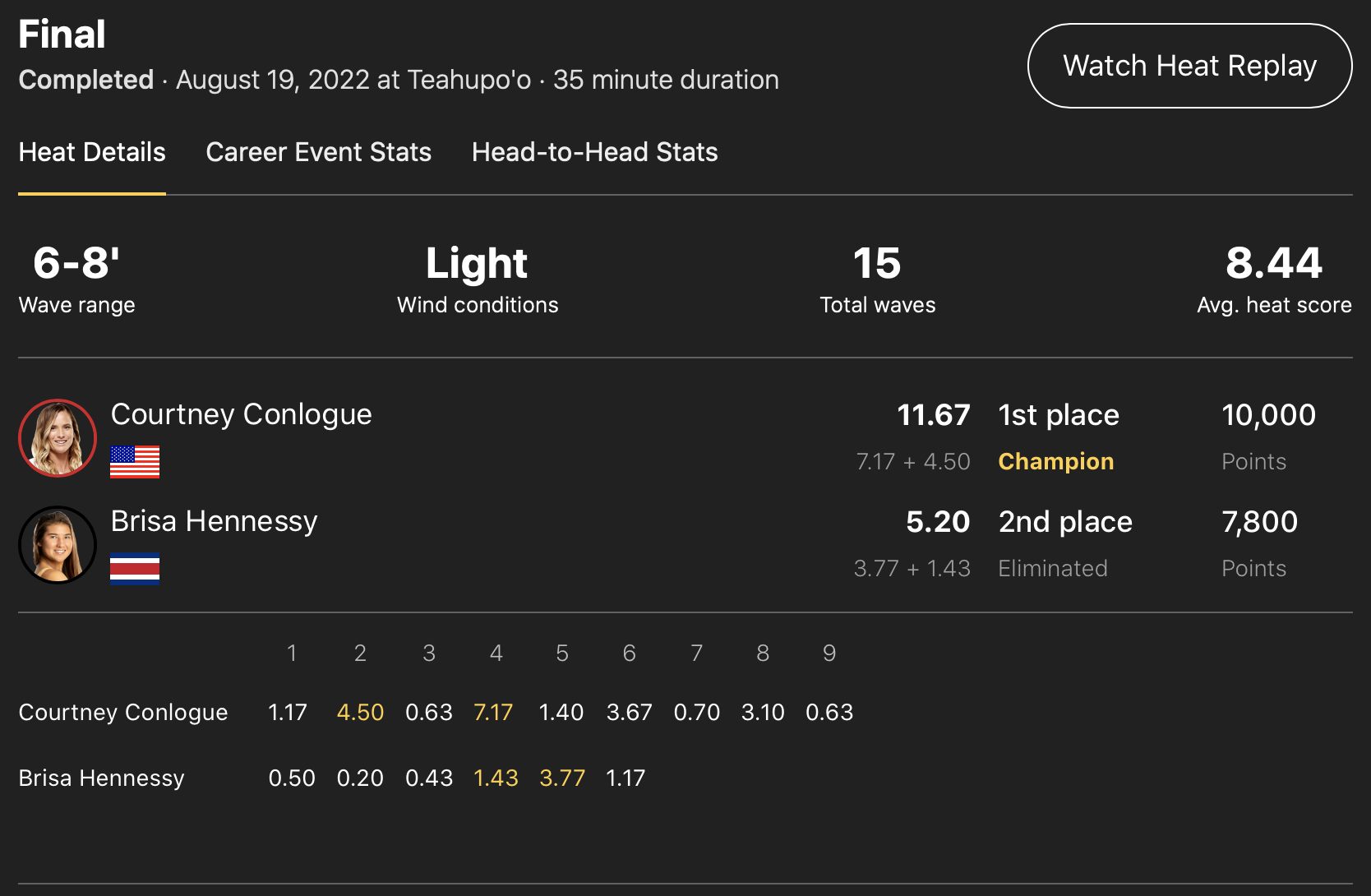 さらにWOMENSではBrissa Hennessyとのファイナルを大幅にリードする形で制したCourtney Conlogueが優勝!