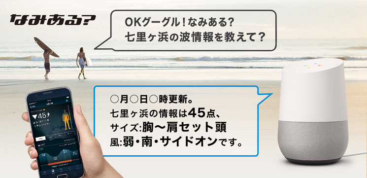 オッケーGoogle ! なみある? 茅ヶ崎の波情報教えて〜! と、Google アシスト音声がしっかりと答えてくれる。車での移動に便利で、スマホの文字が読みづらい人にもオススメです。#2022年8月現在、Siriには対応しておらず、Andoroidのみとなります。