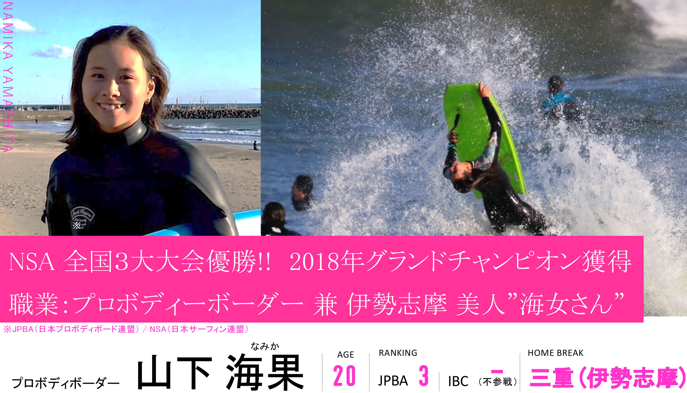 プロボディボーダー:山下 海果選手(20歳)