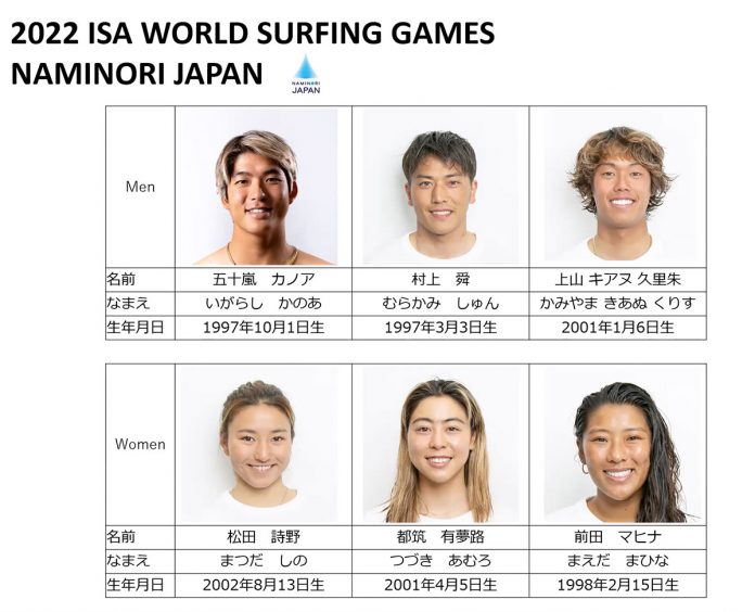 今回、この重要なビッグイベントに参戦する日本代表選手は、五十嵐カノア、村上舜、上山キアヌ久里朱、松田詩野、都筑有夢路、前田マヒナの合計6名。