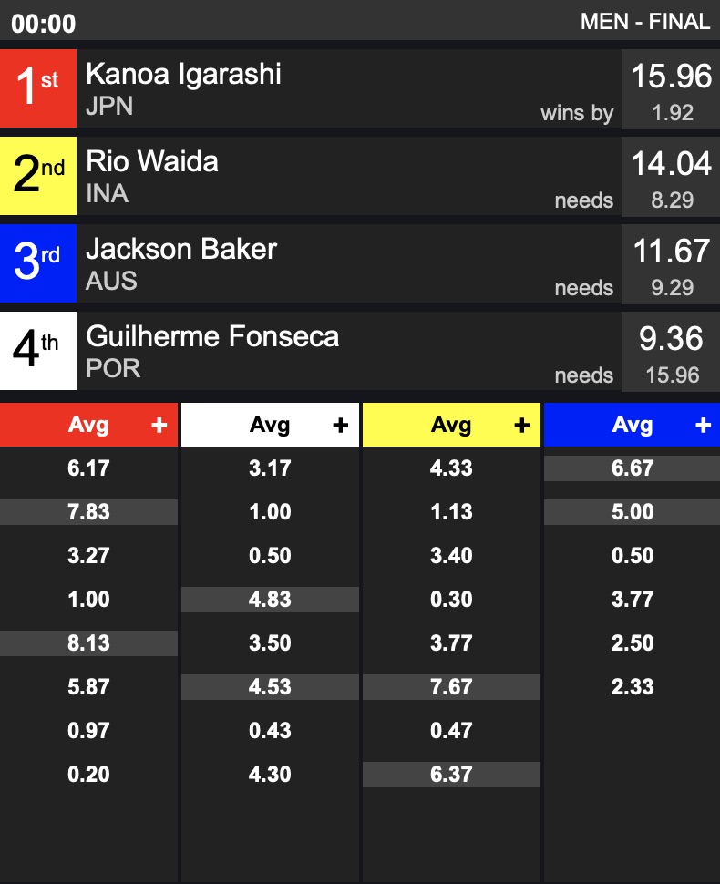 今回の五十嵐カノアの優勝によって、他の男子日本代表選手であの村上舜と上山キアヌの成績との合計ポイントにおいて日本代表チームが男子部門の国別ランキング1位となり、現時点での日本の2024パリオリンピック出場枠は男子3名、女子2名となった。
