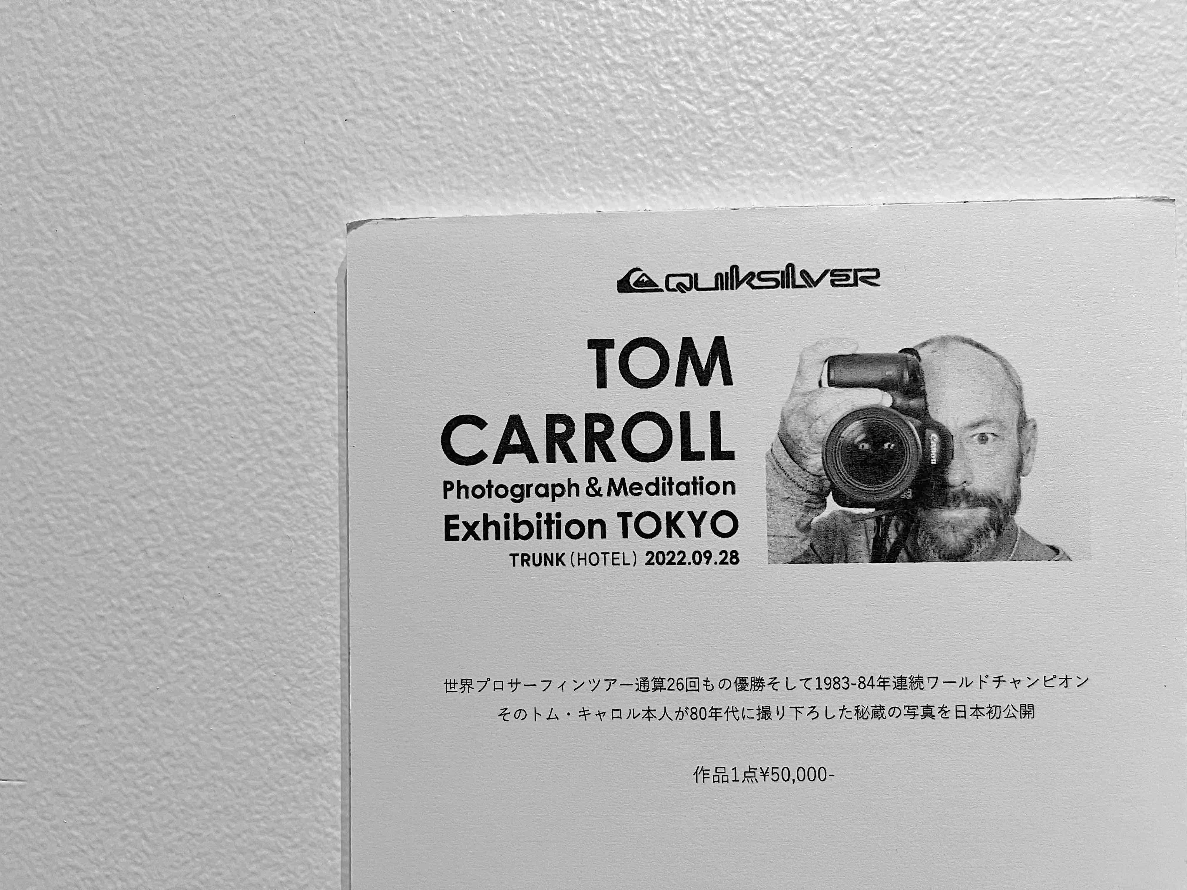1983年、84年と2年連続でワールドチャンプに輝いたTom Carrollが来日中の9/28(水)に東京の渋谷にあるTrunk Hotelにて写真展&トークショー”写真と瞑想の世界”を開催した。