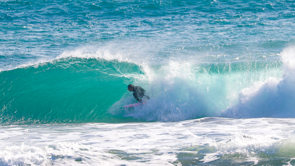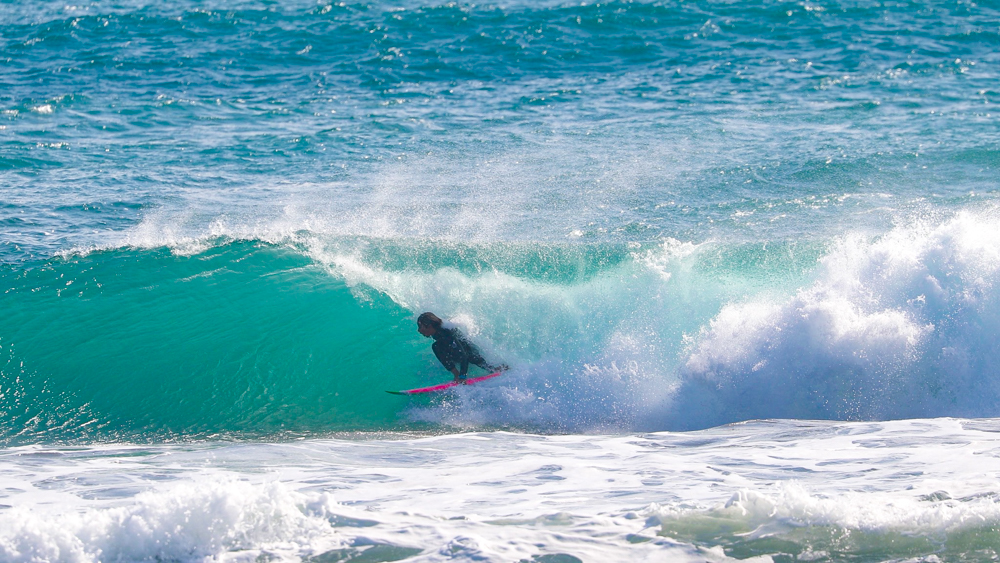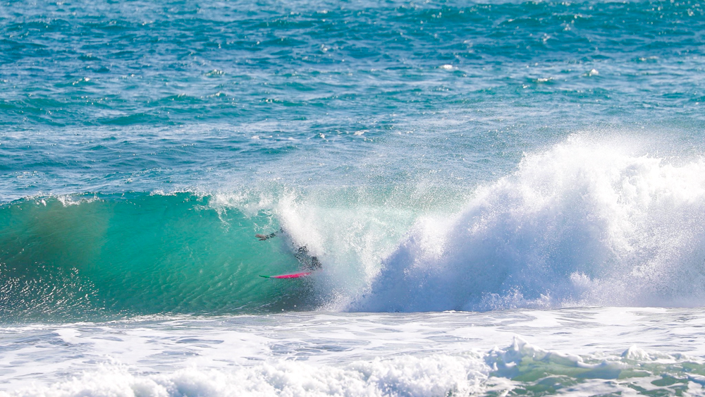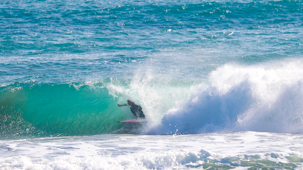 波も大当たりとなり、予想を遥かに超えるドラマが展開されたその2日間の貴重な旅の様子については、DAY1が11/21(月)夜の今晩、DAY2は明日11/22(火)に公開予定となっている中、その予告編とも言うべきDAY1のベストシークエンスとなったKai Kushnerによるテールがルースするほどのレイトテイクオフからレールをはめ込みチューブを駆け抜けてきたさすがアメリカ代表のスキルが光るバックサイド・グラブレールをお届け!!