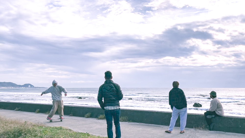 中村兄弟の次男、滉が波が大きいということで浜に座ってiphoneを片手に見学しているその目の前に広がる無人のサンドバーを舞台に早速セッションがスタート。