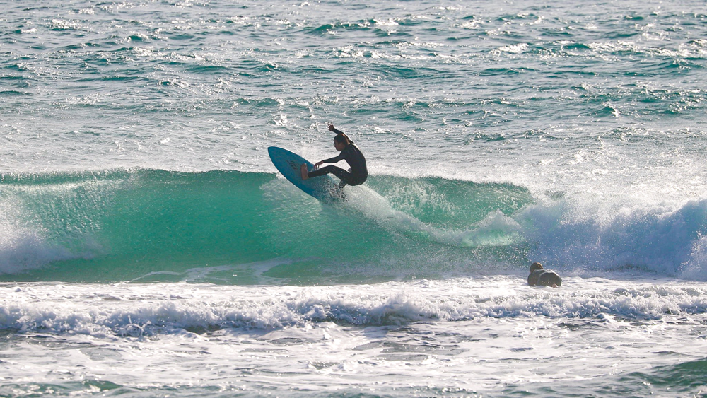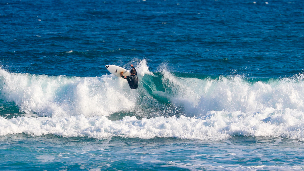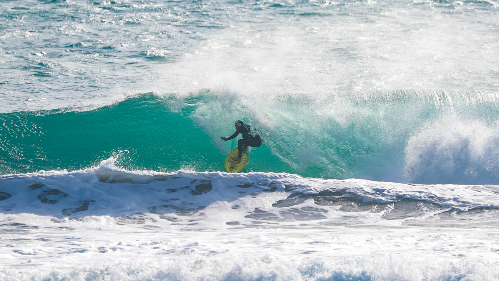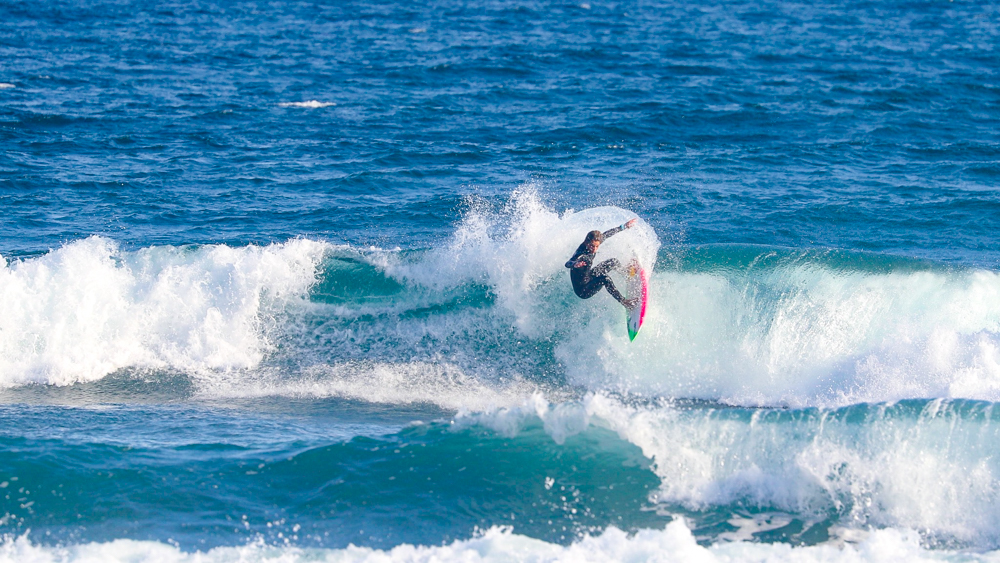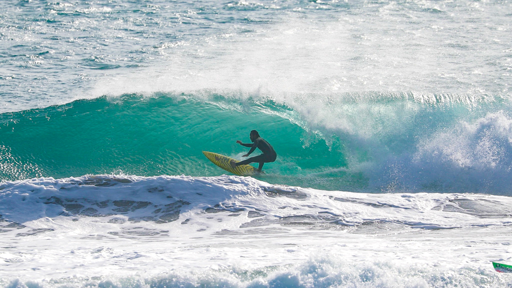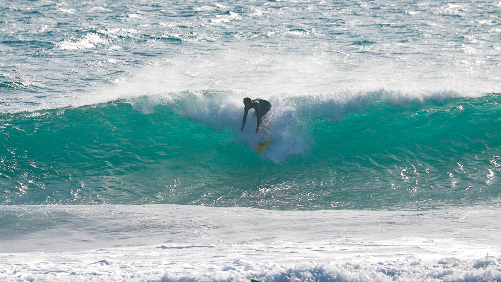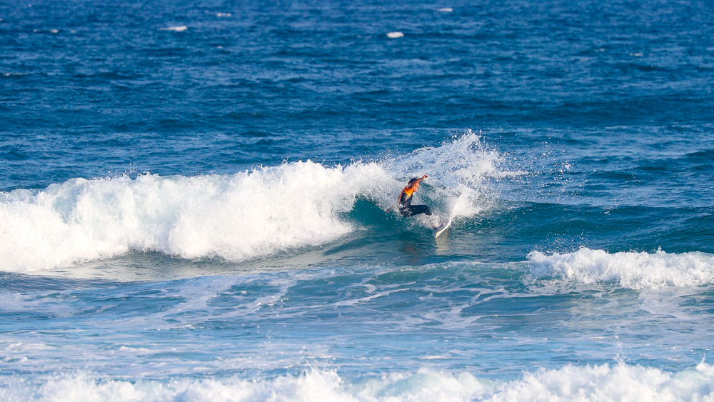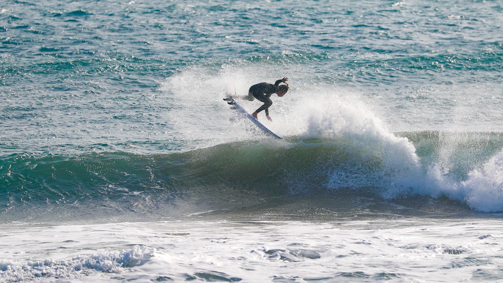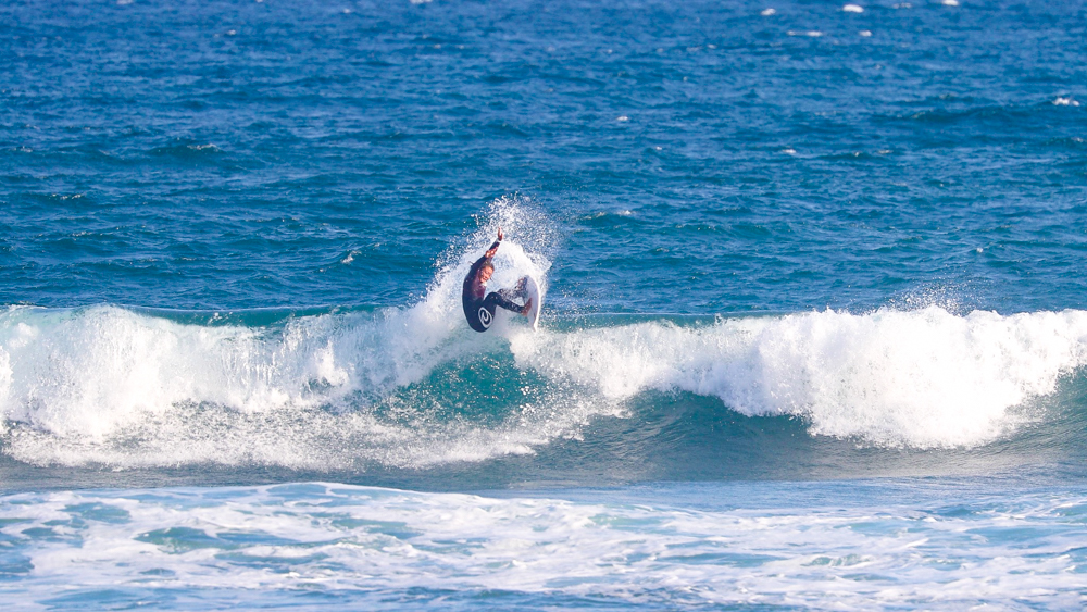 コンパクトに体を折りたたんだバックサイド・グラブレールは、彼の元々のホームである南アフリカのJ-BAYで自然と身につけたであろうワールドレベルのスキルを感じるには十分であった。