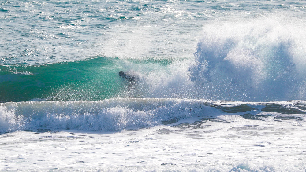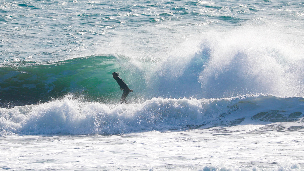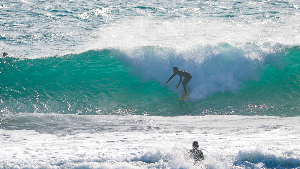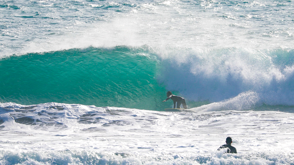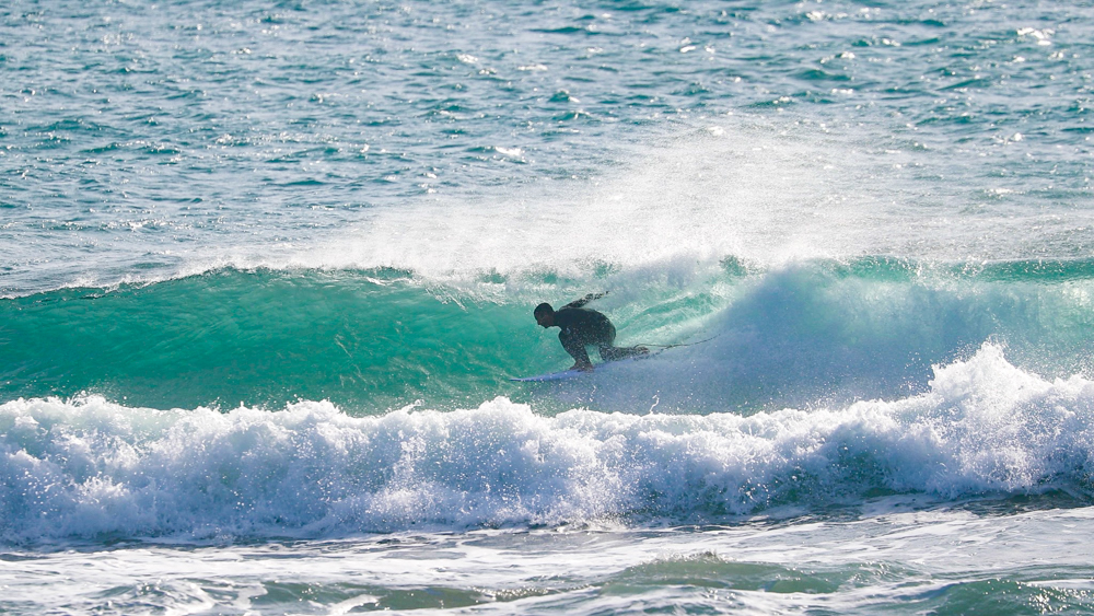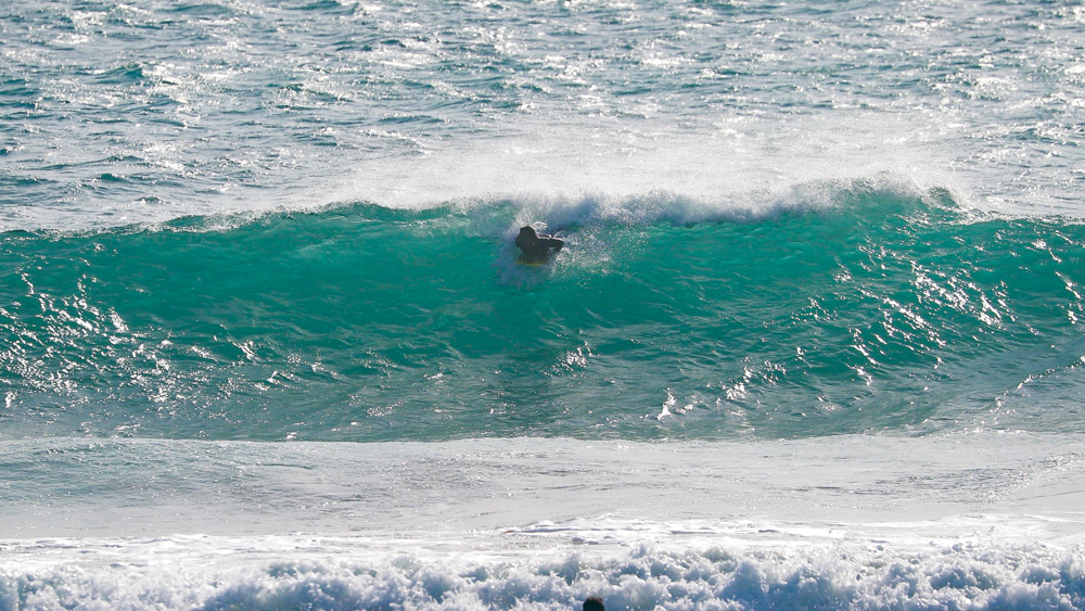 The waves were hollow more than they looked from the beach, and the current was to the right. While it looks difficult to find good waves, first Warren Kushner made the tube. His backside grab rail with body folded compactly was enough to make me realize the world-class skills he must have naturally acquired at his original home, J-Bay in South Africa.