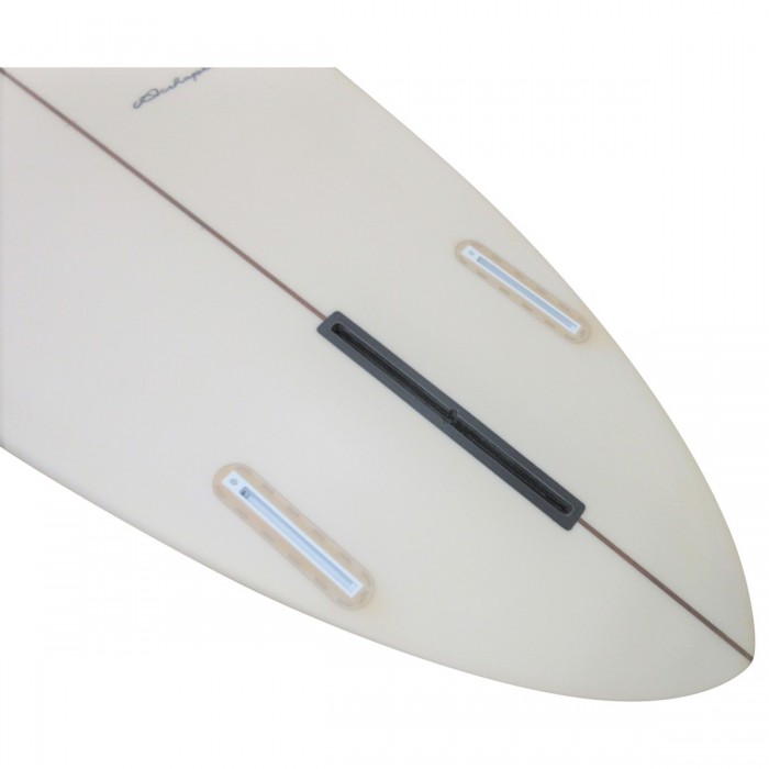 ストレートラインを十分に活かしたローロッカーに尖り気味なノーズ、絞り過ぎていないピンテール、そしてシングルとツインに対応するフィンボックスの絶妙な組み合わせは、テイクオフはもちろん、波の上での爆速滑走感に加えて、コントロール性にも優れており、膝前後の小波からオーバーヘッドのコンディションに至るまでオールラウンドな1本となっている。