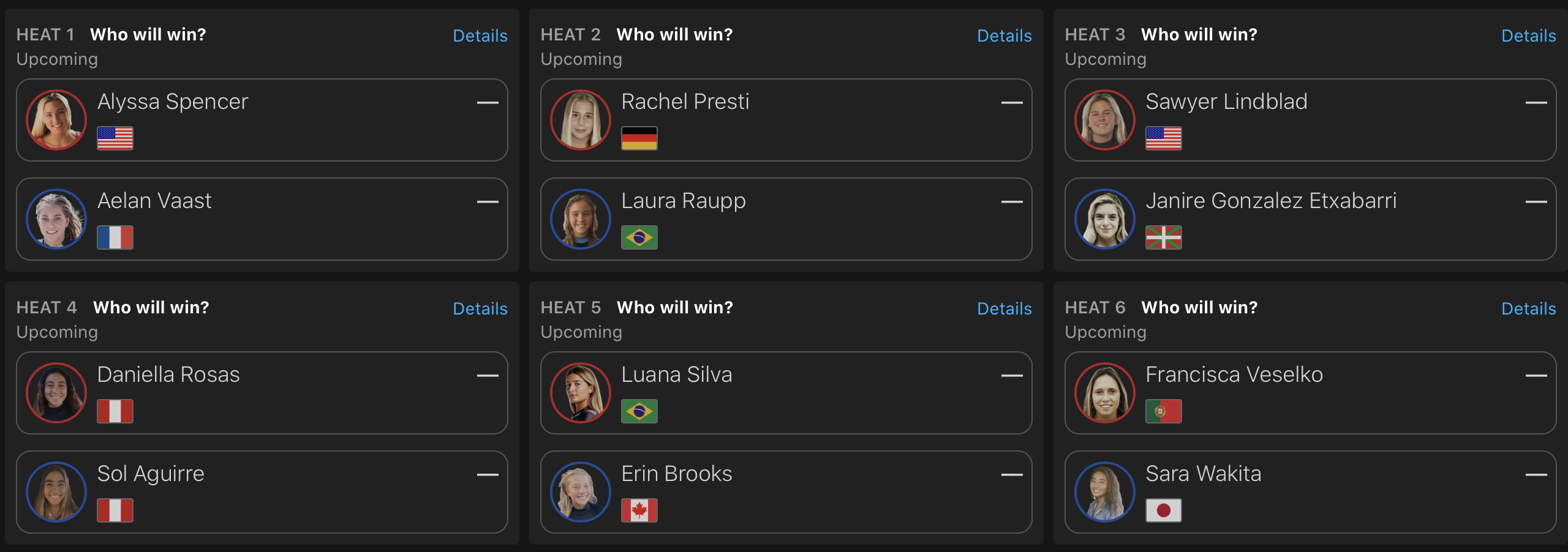 さらにコンテストDAY1に行なわれたラウンドオブ24のヒート3を1位でラウンドアップしたアメリカ代表の渡辺太郎がMENSラウンドオブ16のヒート1でBrondi Saleと対戦予定となっている。