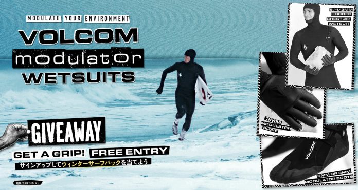 VOLCOM STORE各店舗とオフィシャル・オンラインストアで先行発売が開始となったことを記念し、VOLCOMの5mmフルスーツとグローブ、ブーツの3点セットが抽選で1名様に当たる”VOLCOM modulator wetsuits GIVEAWAY”キャンペーン開催中!
