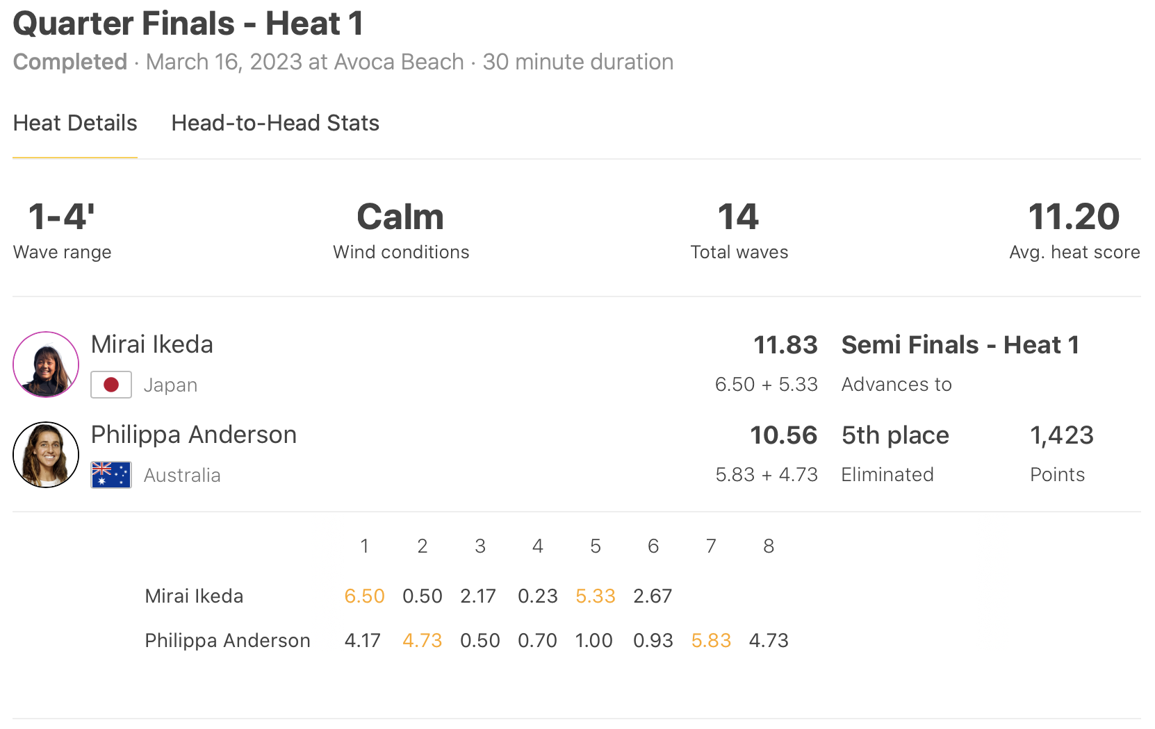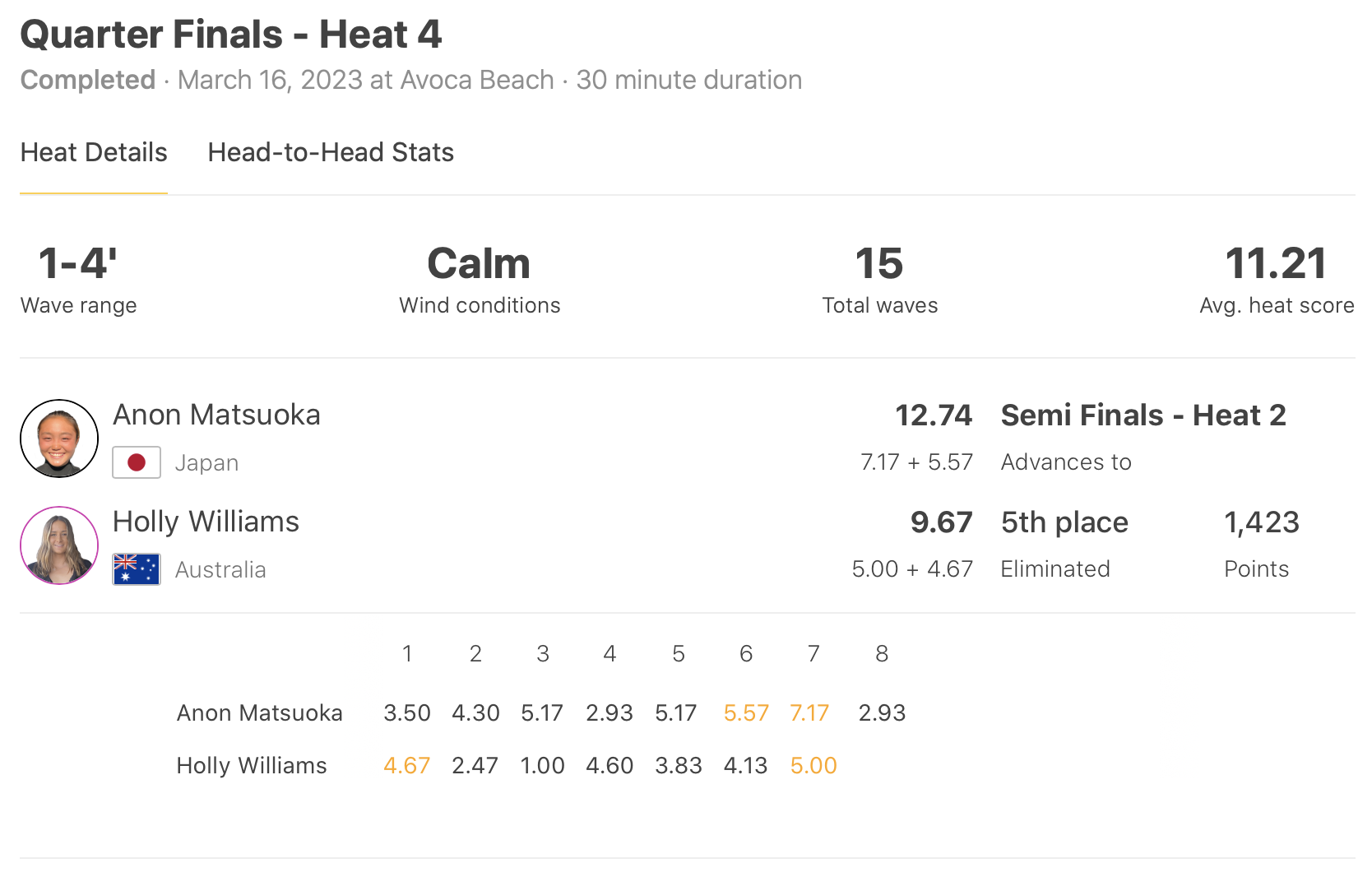 その一方でWOMENSではクォーターファイナルのヒート1で池田美来がPhillippa Andersonを下し、ヒート4では松岡亜音がHolly Williamsに勝利し、共にセミファイナルへ進出!