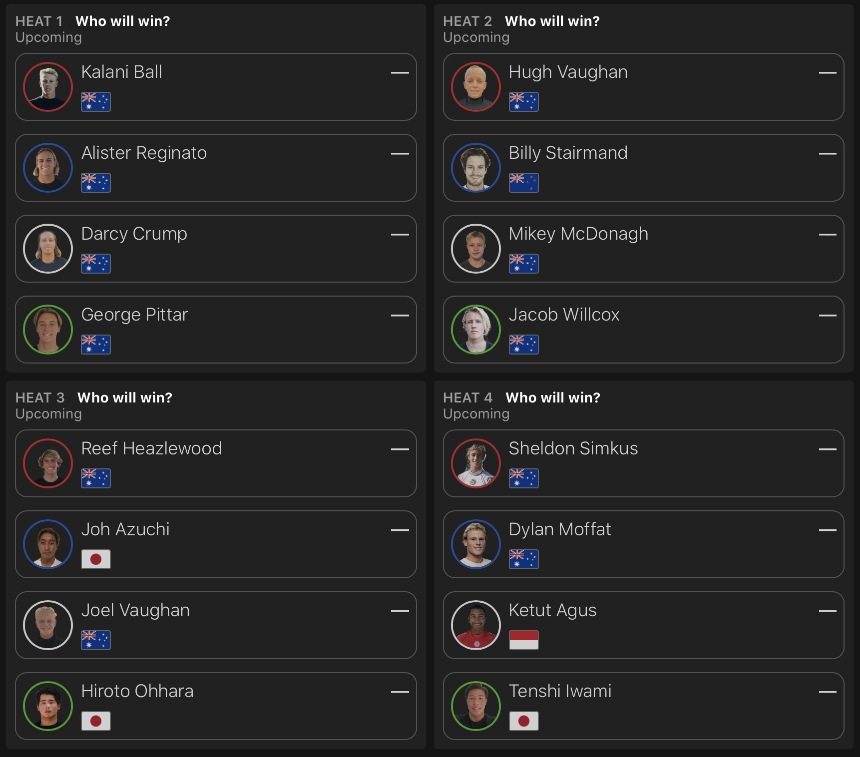 迎えるラウンドオブ16でのMENS、WOMENSにおけるヒート組みは下記の通り。