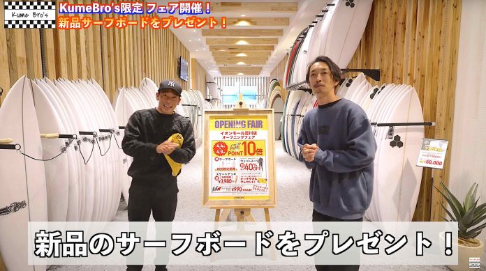 昨日お届けした大橋海人のoceanpeopleとはまた違った切り口で、500本以上のラインナップを誇るサーフボードの数々はもちろん、アパレルコーナーやギアコーナーに至るまで細やかに店内の様子をチェック可能なkumebrosならではの仕上がりとなっている!