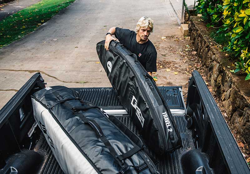 FCS トラベルシリーズはラバーコーティングされた厚手のリップストップ素材と、棺型の2層構造により様々な環境からボードを守ります。各モデルが全てのトラベリングサーファーのニーズに応じた高いレベルでのボードを保護するために作られています。ボディ部分に10MMのフォームとノーズ部分にはさらに5MM 厚のパッドが施されています。 アクセサリー収納用にポケットが内蔵されています。
