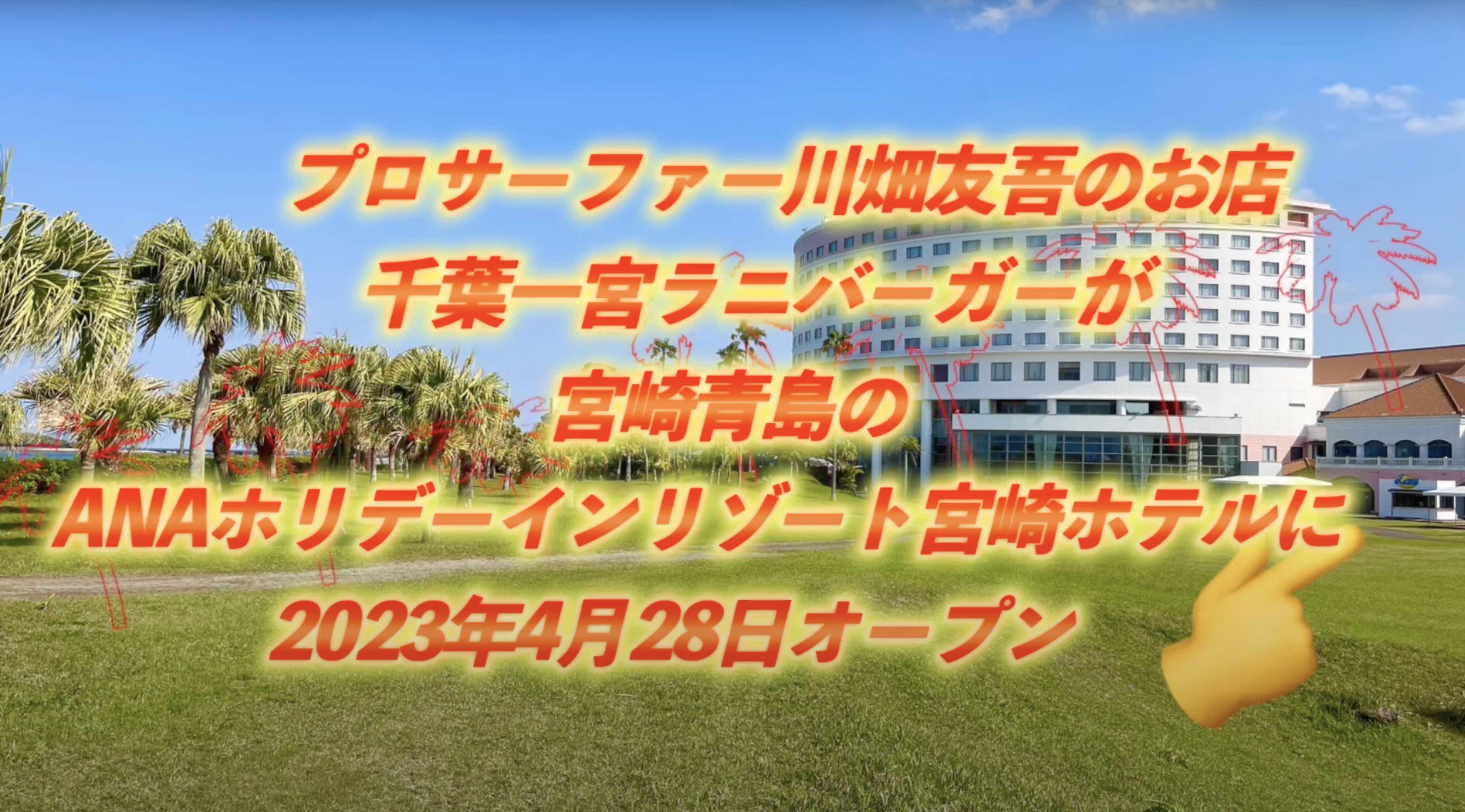 さらに4/28(金)、川畑友吾プロが青島のANAホリデーインリゾート宮崎ホテルに、千葉一宮にあるラニバーガーの第2店舗目をオープン!!