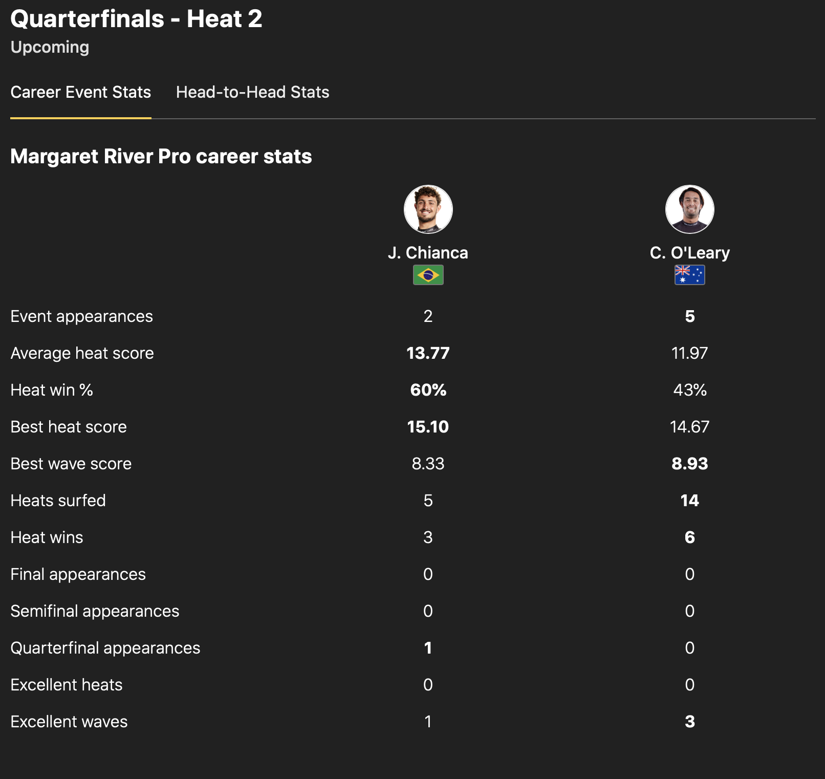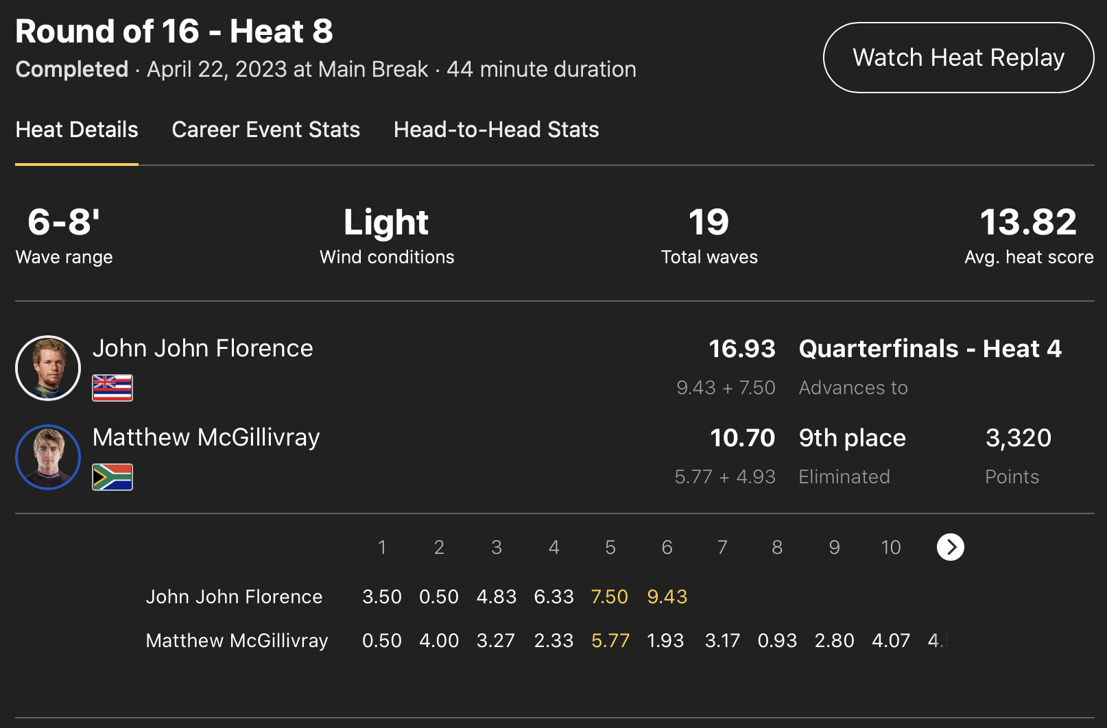 迎えるクォーターファイナルのヒート2では現在CTランキングトップでイエロージャージを身に纏って戦うJoao Chiancaと対戦予定。