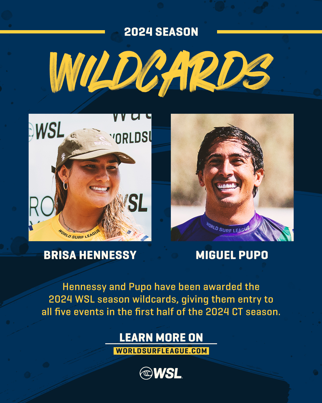 さらにMiguel PupoとBrisa Hennessyの2名がWSLシーズン・ワイルドカードの別枠により2024年CT前半戦への出場権のみを獲得することが決定。