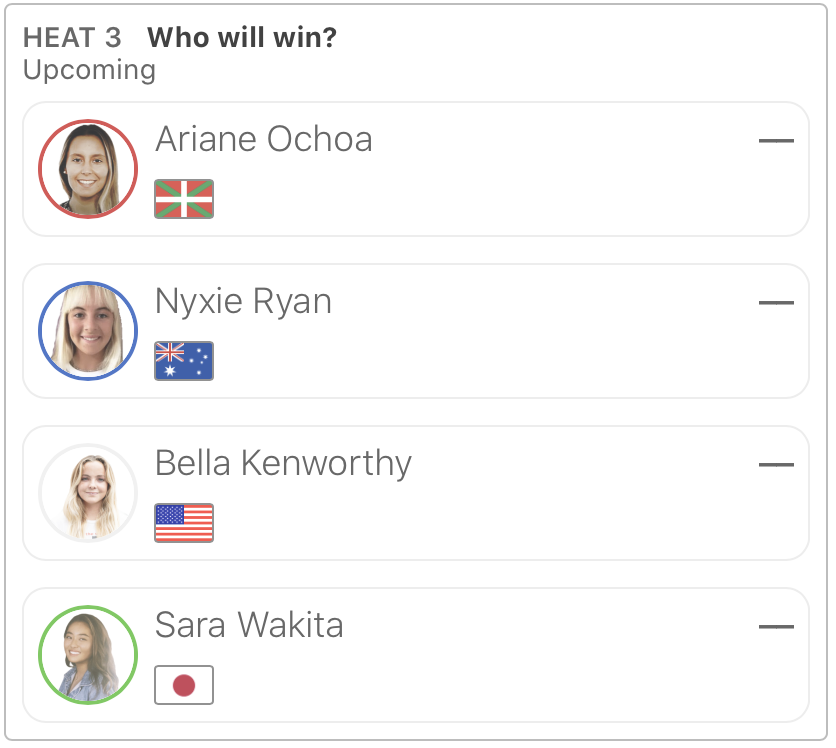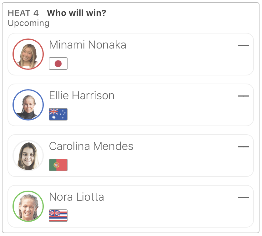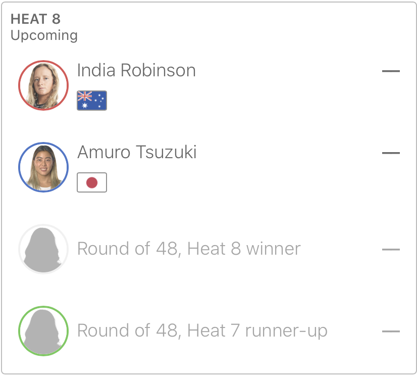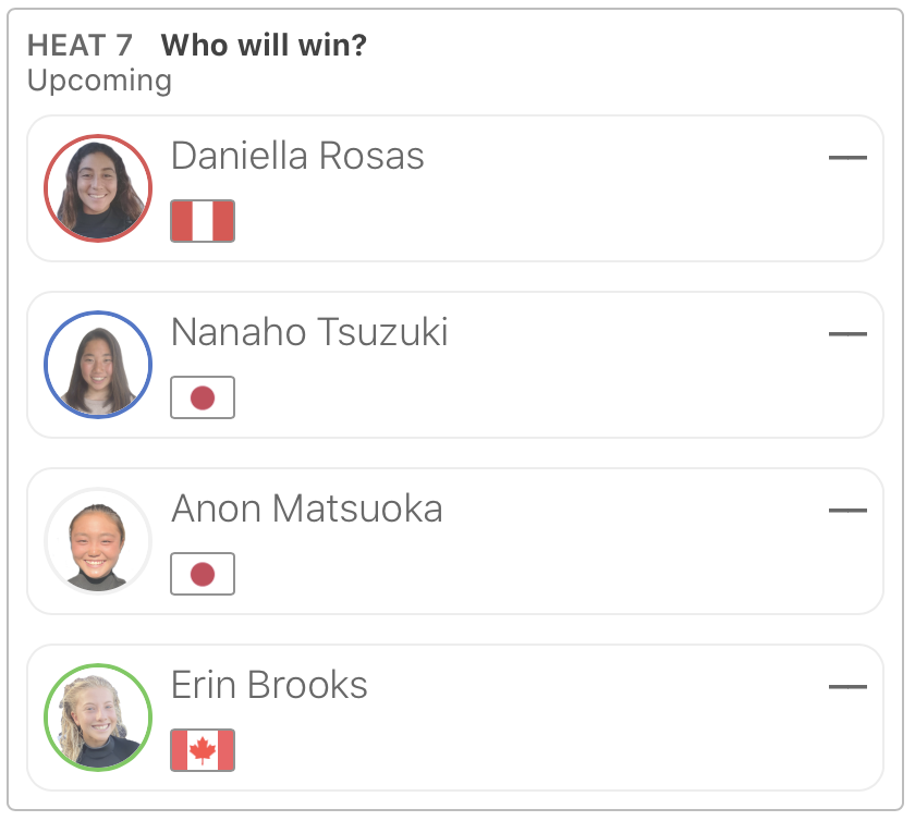 WOMENSラウンドオブ64のヒート3に脇田紗良、ヒート4に野中美波、ヒート7に都築虹帆と松岡亜音、さらにラウンドオブ32のヒート8には都筑有夢路が登場予定となっている。