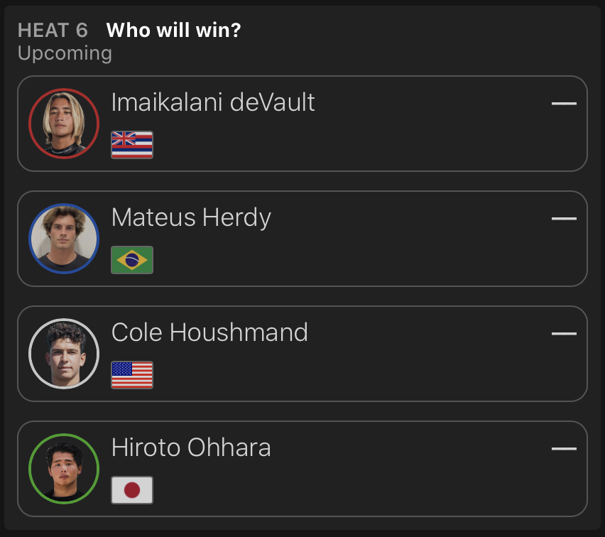 迎えるラウンドオブ64のヒート6に組み込まれた大原洋人は、Imaikalani devVaultとMateus Herdy、Colehoushmandと対戦。