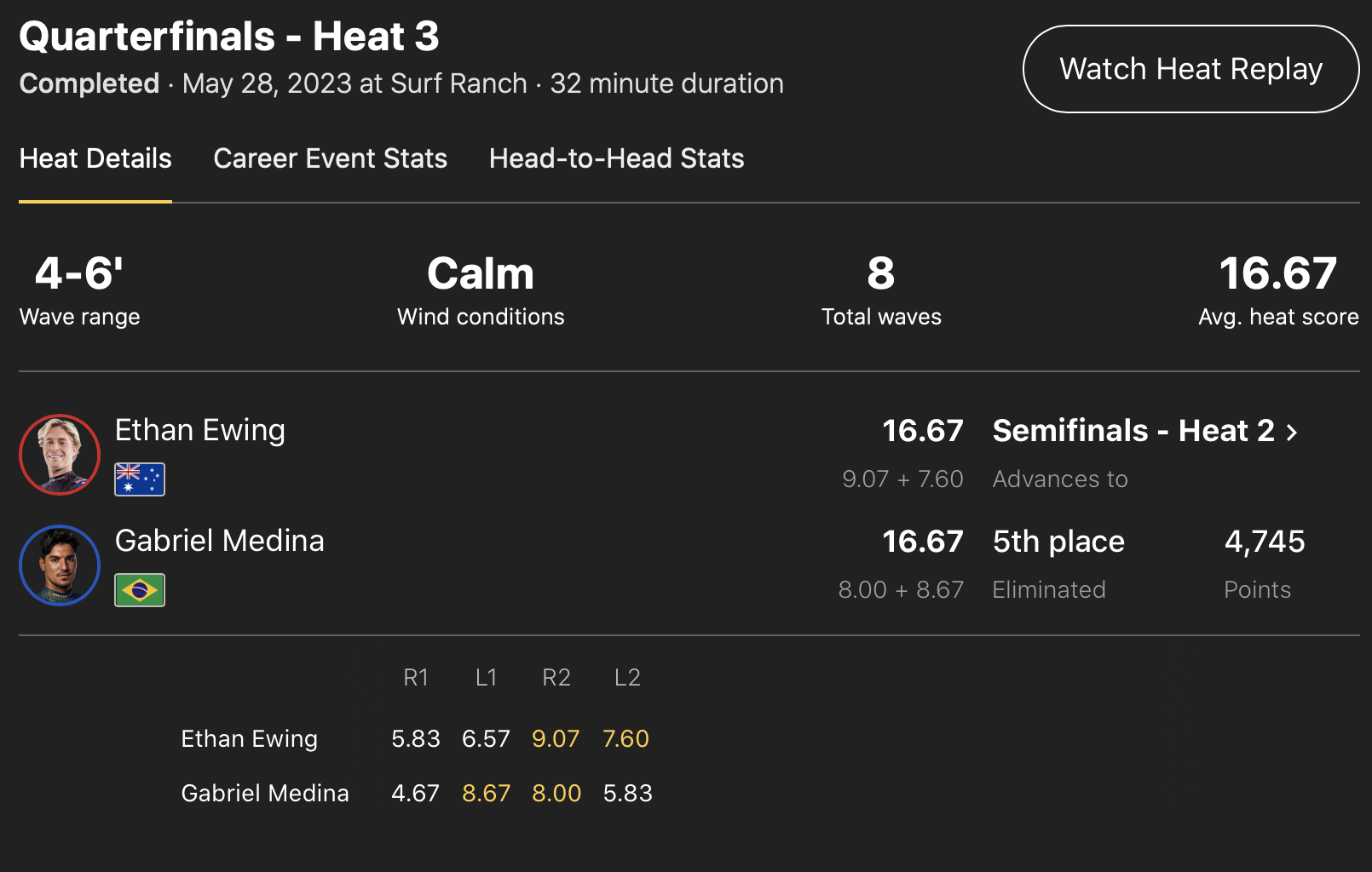 Surf Ranchで2度優勝経験のあるワールドチャンプGabriel MedinaにEthan Ewingが大逆転を果たすそのドラマチックな展開は必見となっております。