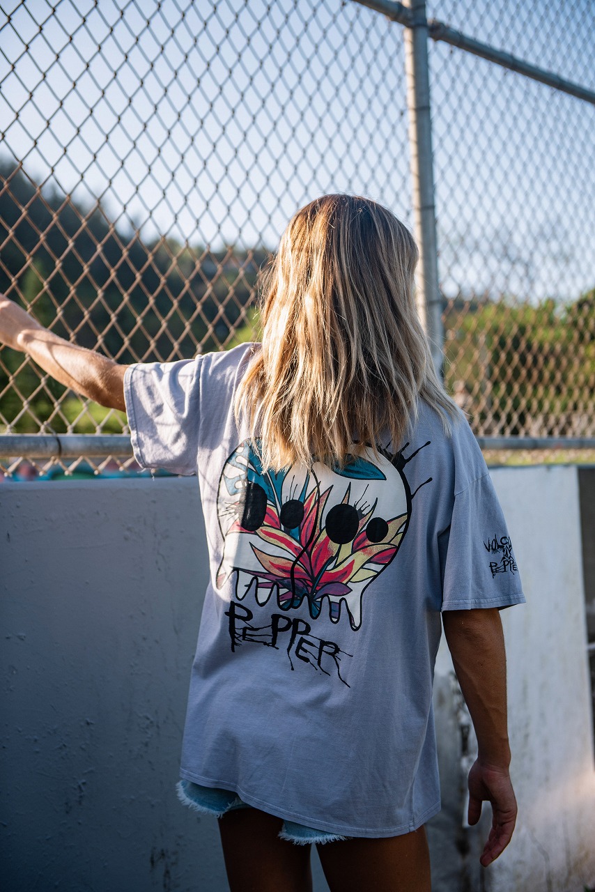 Volcom Entertainmentの伝統とパンクロックのすべてから受けたインスピレーションをメンズ、ウィメンズ、ユニセックススタイルに落とし込んだ本コレクションは、Pepperと同じハワイ出身の元VOLCOMライダーでアーティストのBen Broughによるアートワークが施されているのが最大の特徴。
