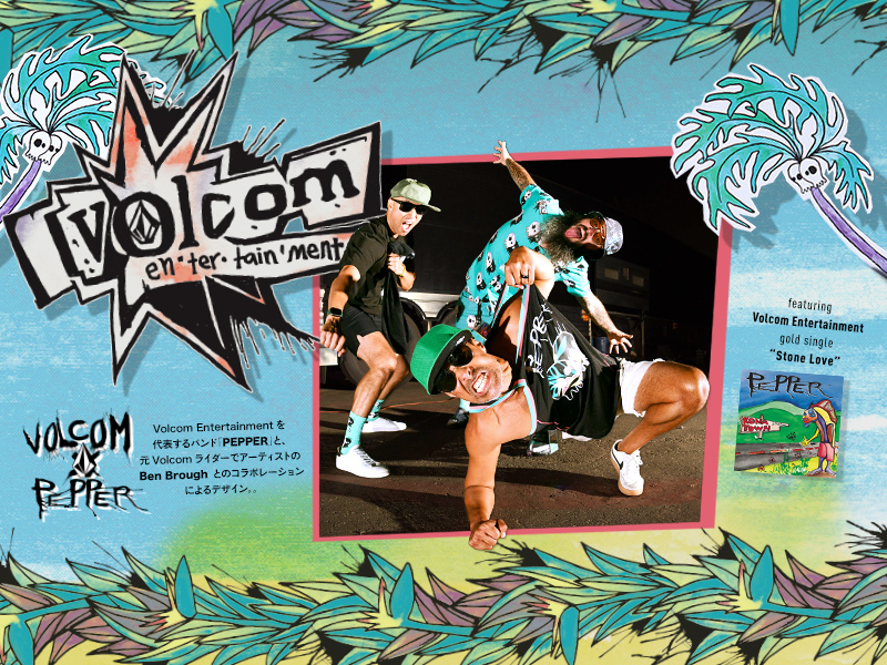 VOLCOMによる音楽レーベルVolcom Entertainmentの復活を祝し、1999年にVolcom Entertaimentと契約を交わした日本でも人気の高い3人組のハワイアン・レゲエロックバンド”Pepper”とのコラボ・コレクション”VOLCOM×Pepper”がリリースされることとなった!!