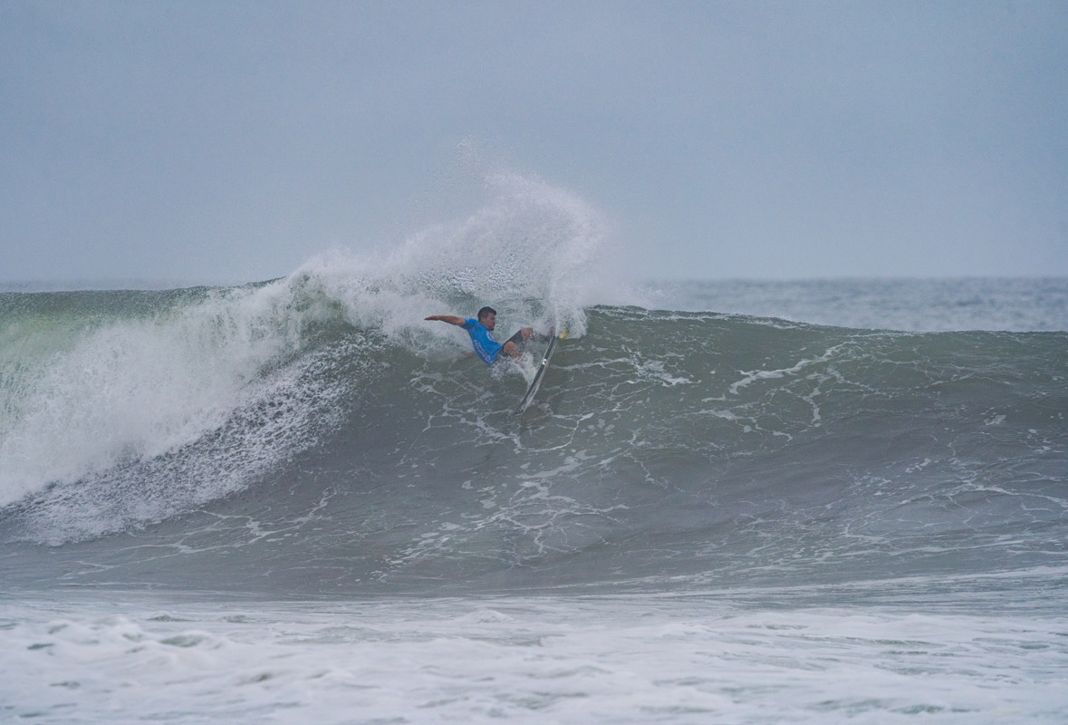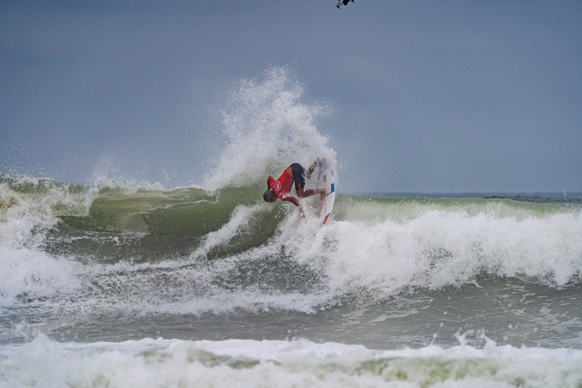 その一方でラウンド7でペルーのLucca MesinasとMiguel Tudela、メキシコのAlan Clelandと対戦した五十嵐カノアはフィニッシュでエアリバースを決めるライディングで9.00ptと残り1分で掴んだグーフィーの波で8.80ptといったエクセレントスコア2本をまとめ、トータルスコア17.80ptとCTトップサーファーとしての強さをみせつけるダントツの1位でファイナルへ進出。