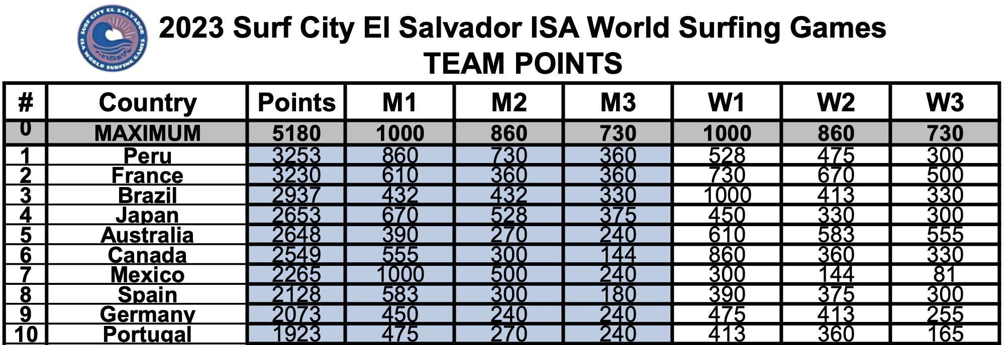 ペルーが国別1位で金メダルを獲得し、2位となったフランスが銀メダル、3位となったブラジルが銅メダルを獲得した。
