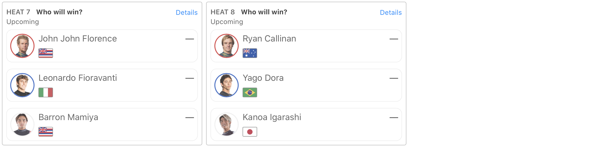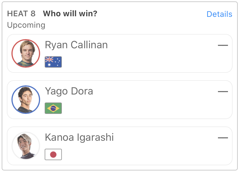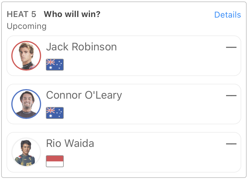 注目の日本人選手たちは、五十嵐カノアはヒート8、Connor O’learyと和井田理央はヒート5に登場予定。