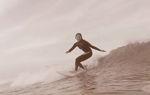 切れ味鋭いダイナミックなビッグターンを武器とするそんな彼女が、SIMON SHAPESのシングルフィンエッグ6’6″でクルージング・セッションを決行!