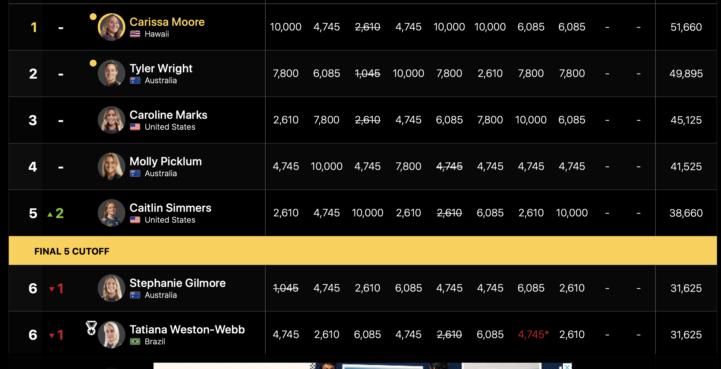 WOMENS準優勝のTyler Wrightは依然CTランンキング2位をキープする形となった。