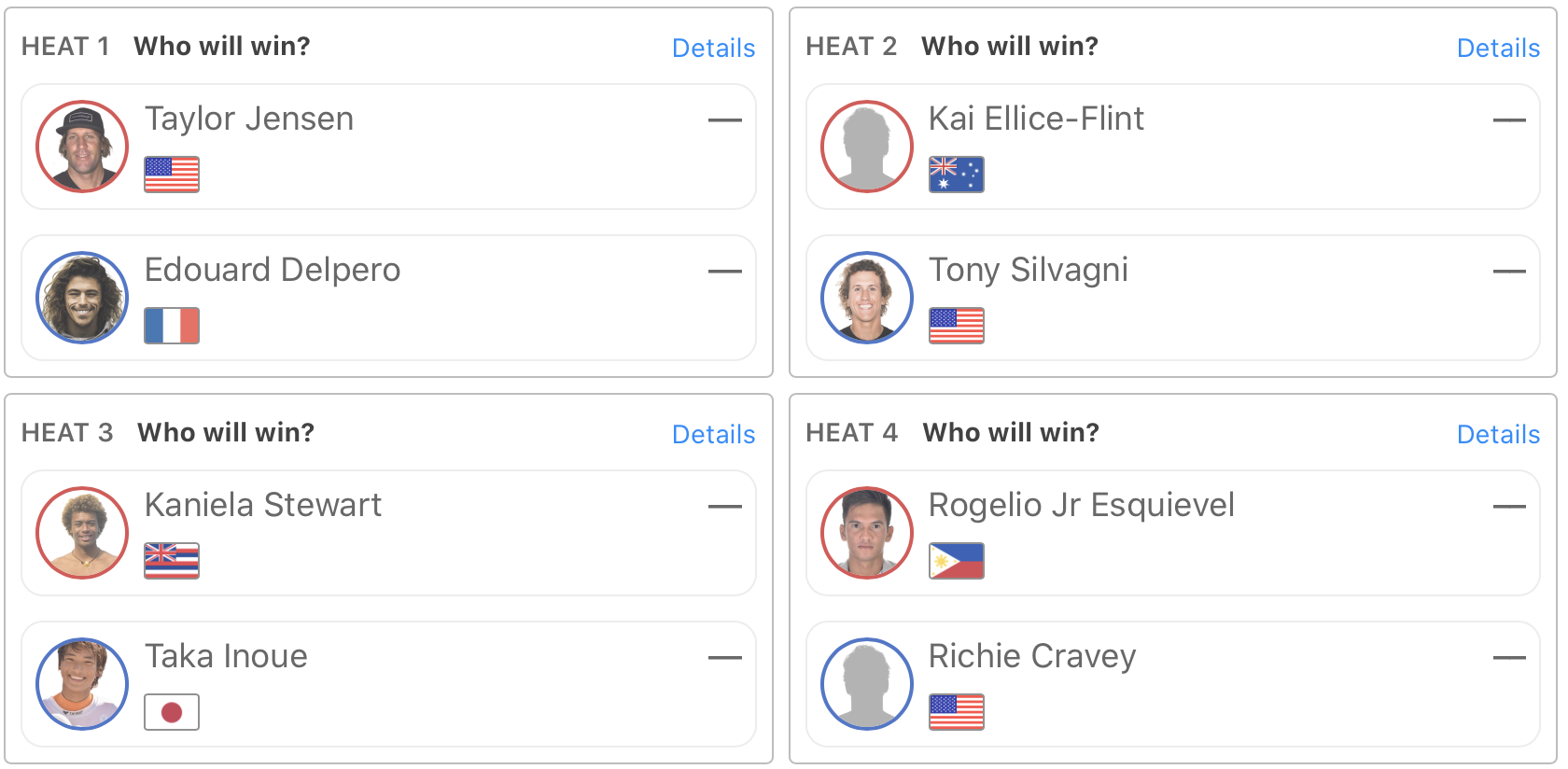 迎えるラウンドオブ32ではヒート8にクレジットされ、Nat Young、Leo Casal、Jadson Andreと対戦予定となっている。