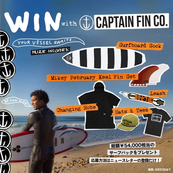 さらに今期よりアパレルの展開も幅広くスタートとなり、さらに勢いを増している中、Captain Finオフィシャル・サイトでニュースレターの登録を行なうとCaptain Fin6点セットが抽選で1名様に当たる”WIN with CAPTAIN FINプレゼント・キャンペーン”を開催中!