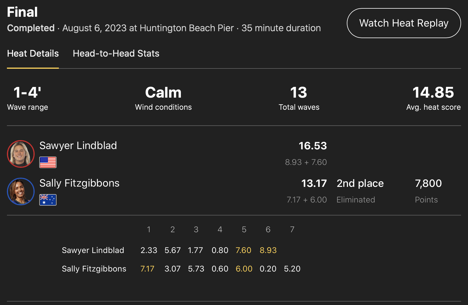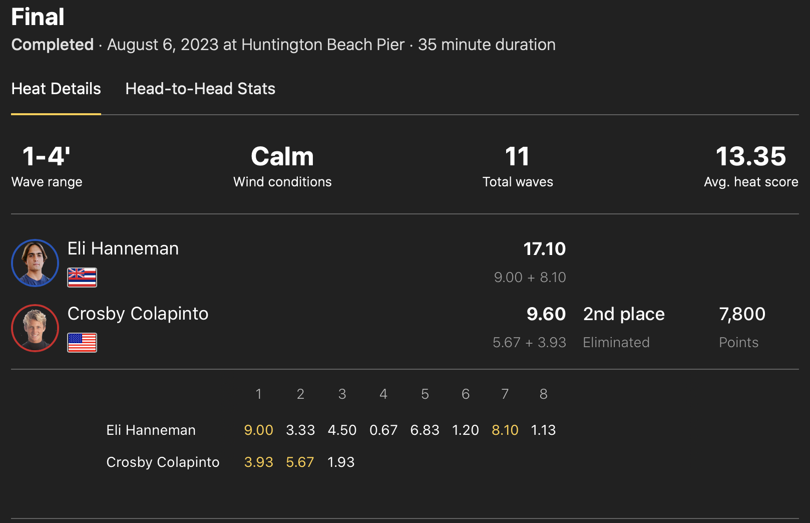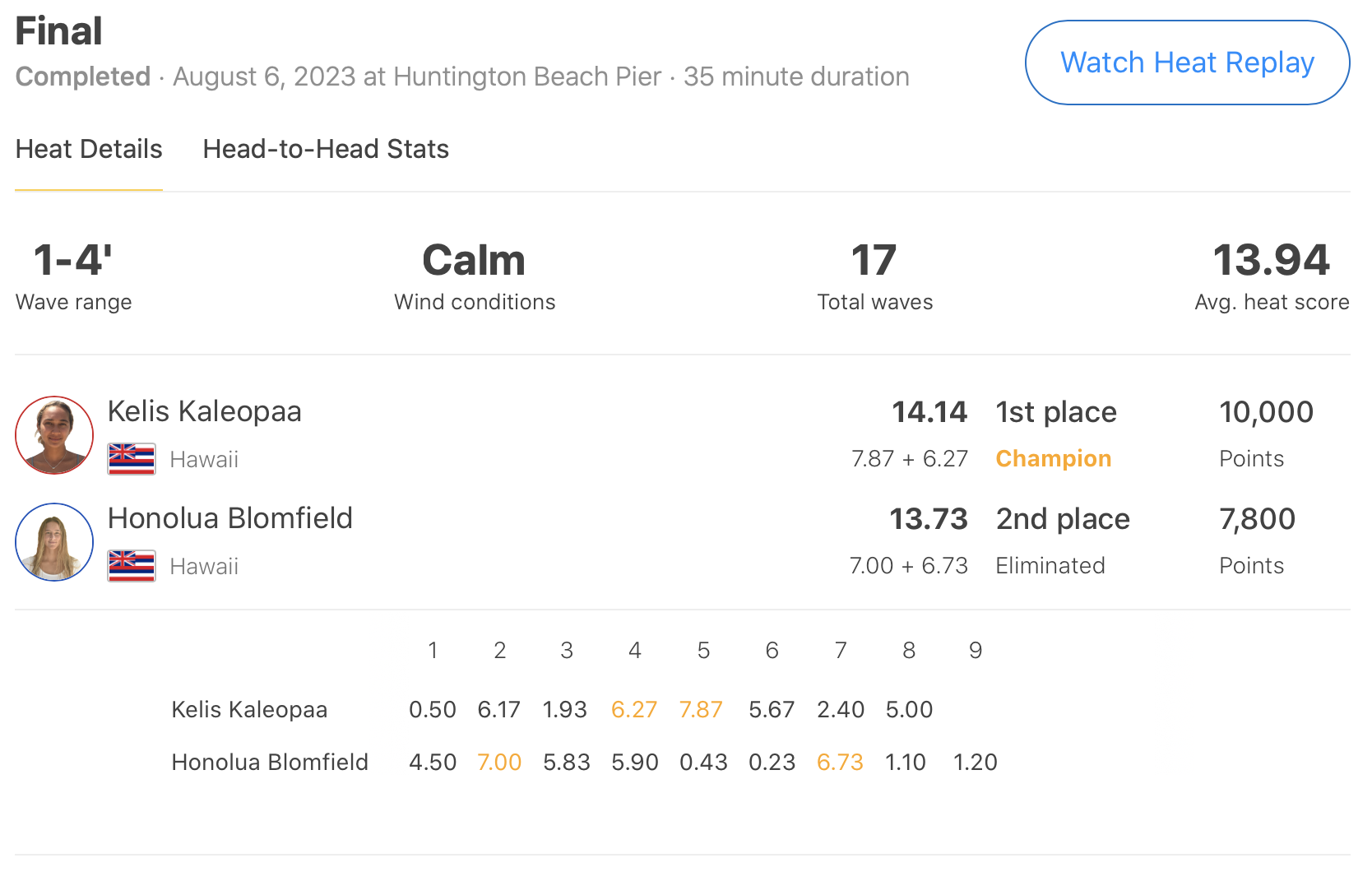 注目の五十嵐カノアは、優勝のEli Hannemanと対戦したセミファイナルのヒート2で積極的に波を掴んで見せ場を作り、着実にスコアを重ねたが、Eli Hannemanにヒートをリードされる形のまま惜しくもここで敗退。