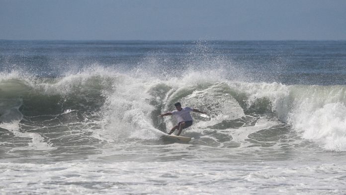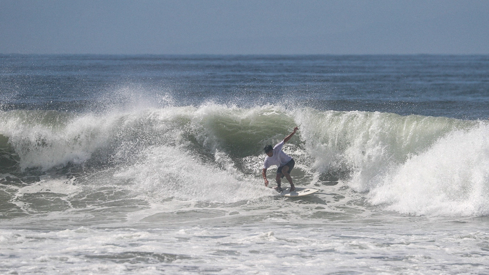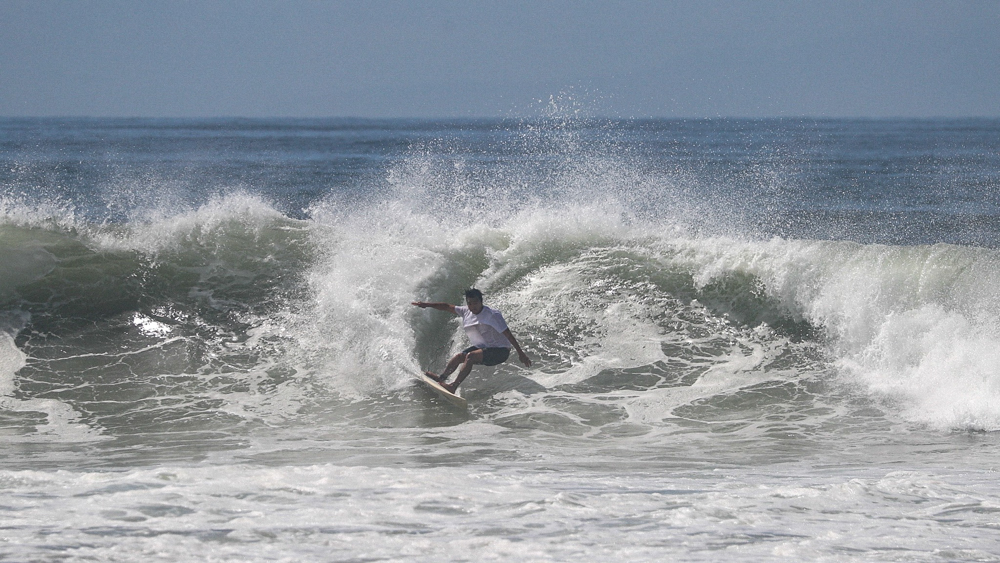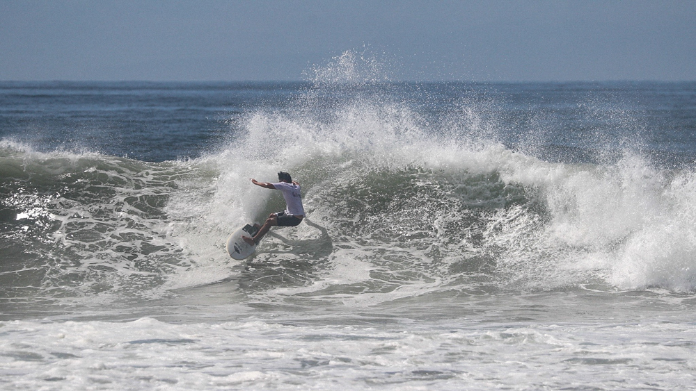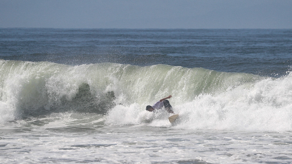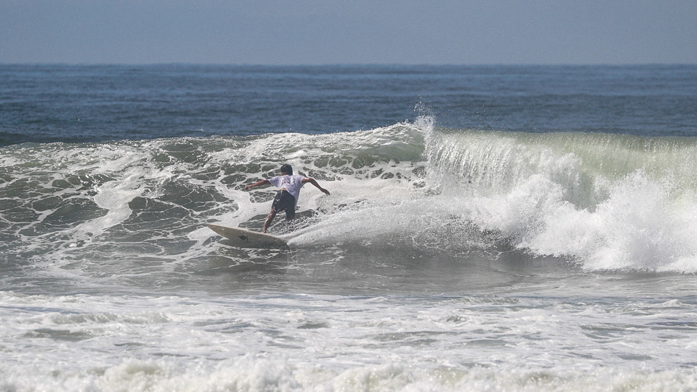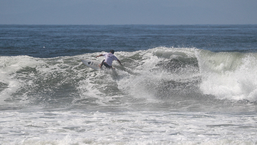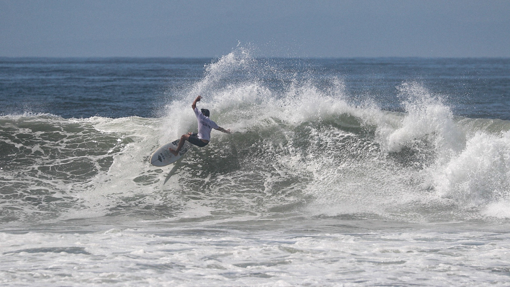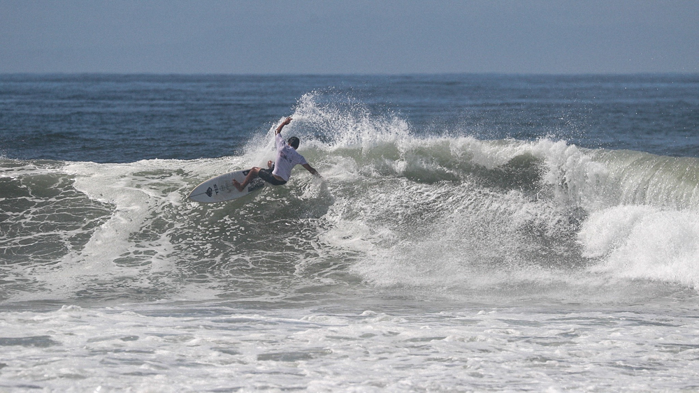 他のプロサーファーたちがパフォーマンスボードを使う中、たった一人でミッドレングスを操り、ストロークの長い観ていて気持ちいいラインを描きまくり、スタイル全開だった久米大志による、波を縦に切り裂くフロントサイド・レイバック入りからのビッグカーヴィングのシークエンスをお届け!!
