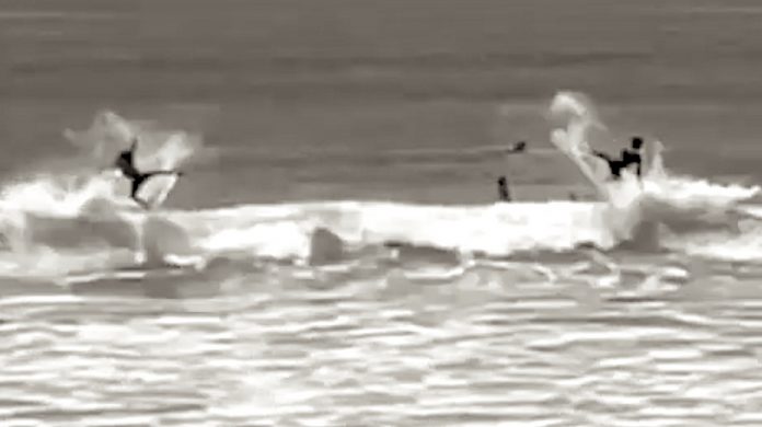 そんな中、ホーム鵠沼でフリーサーフィン中だったTHE USA SURFプロライダーの大場玲遥と、HRS SURFプロライダー鈴木一歩が、まさに神降臨と言って過言ではない鬼のシンクロを実現!!
