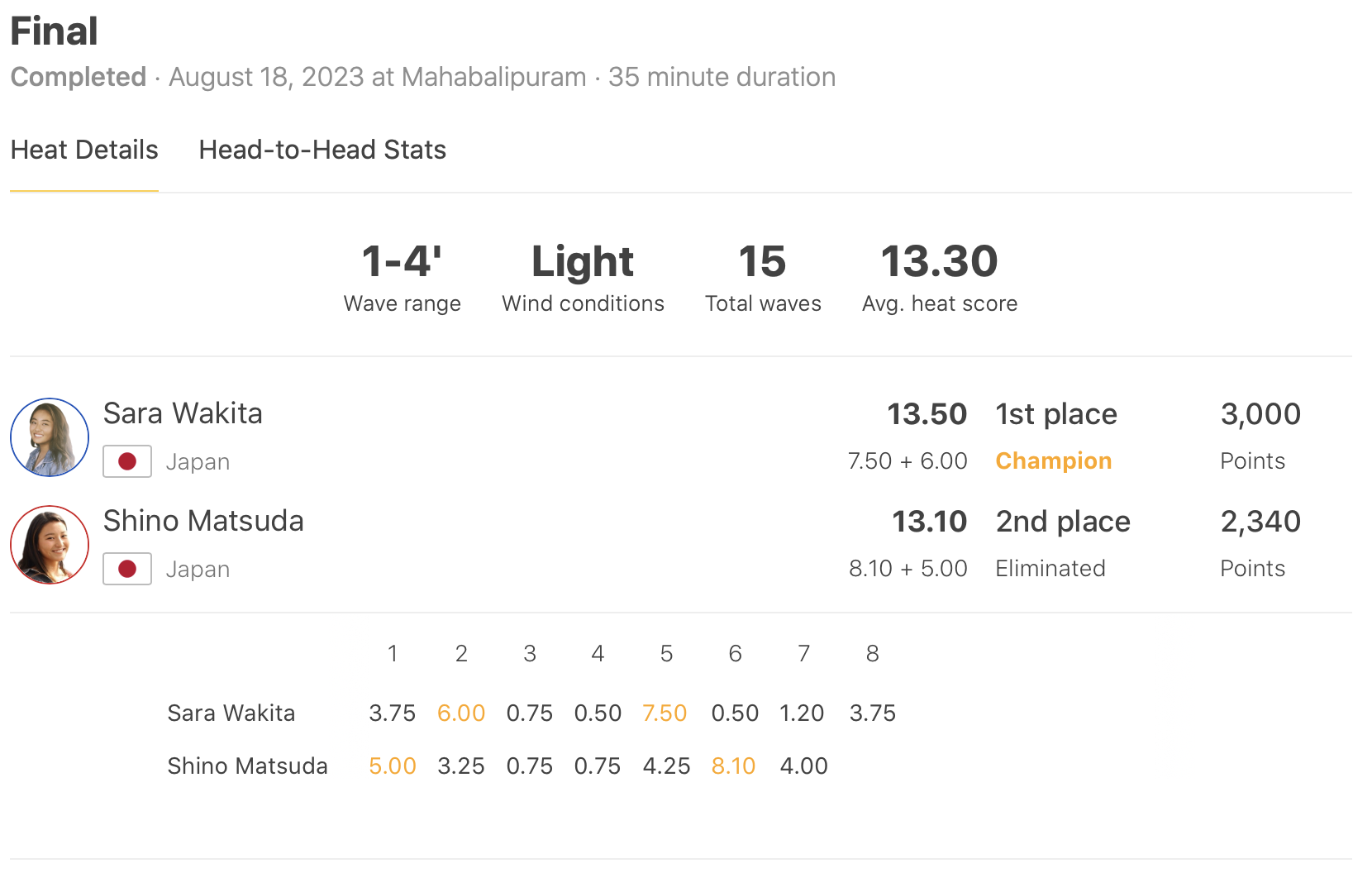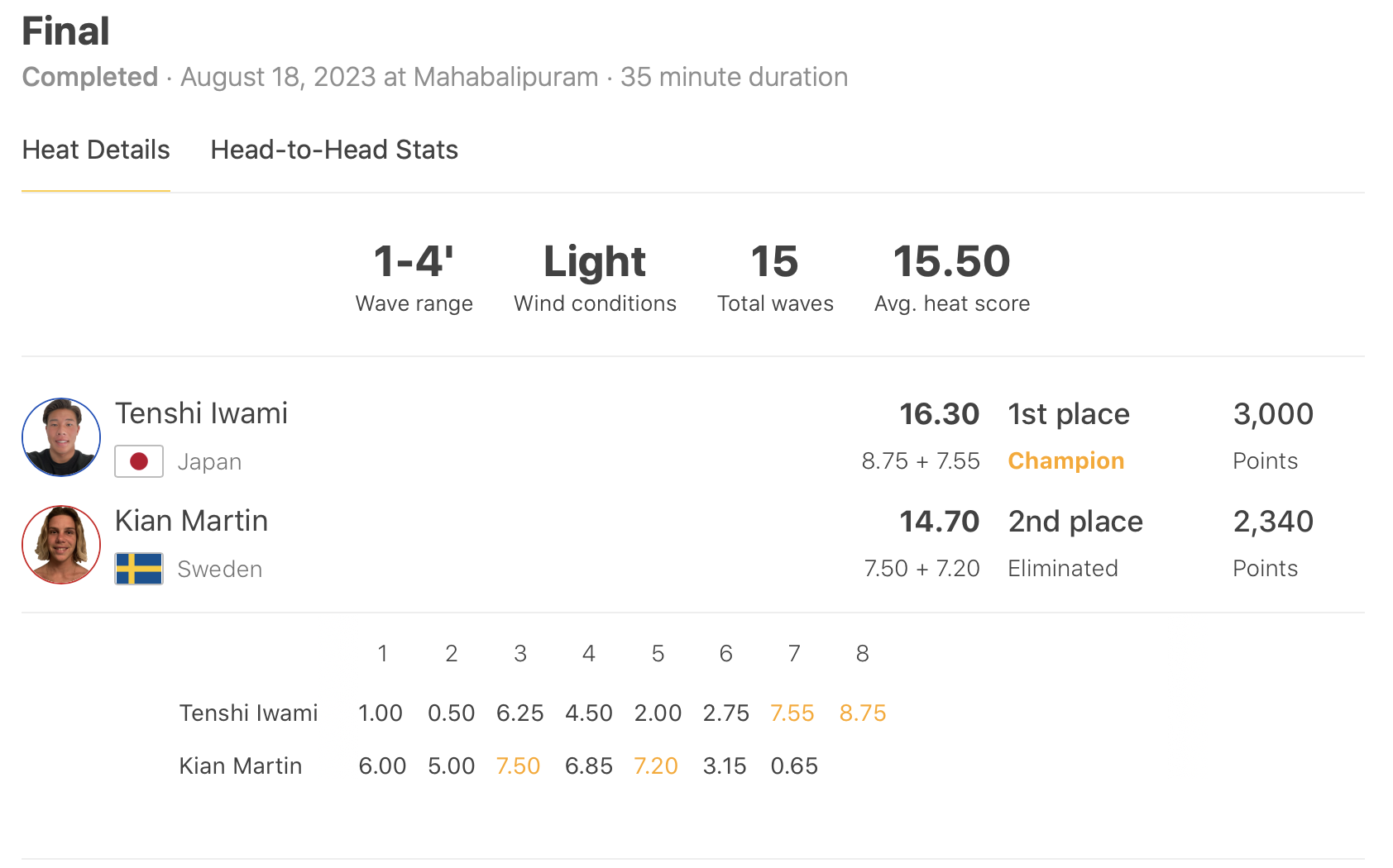 MENSは残り1分を切ったところで8.75ptのエクセレント・スコアを叩き出してKian Martinを相手に大逆転劇を繰り広げた岩見天獅が、WOMENSは松田詩野をファイナルで抑えた脇田紗良が優勝を決めた!!
