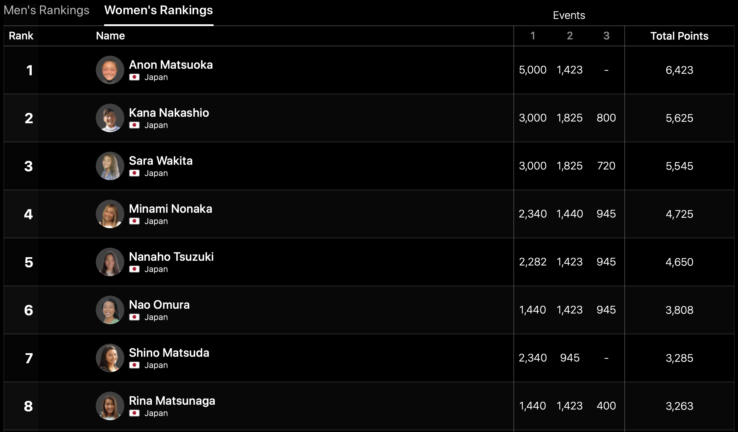 本イベントを終えた時点でのQSアジア・ランキングは下記の通り。