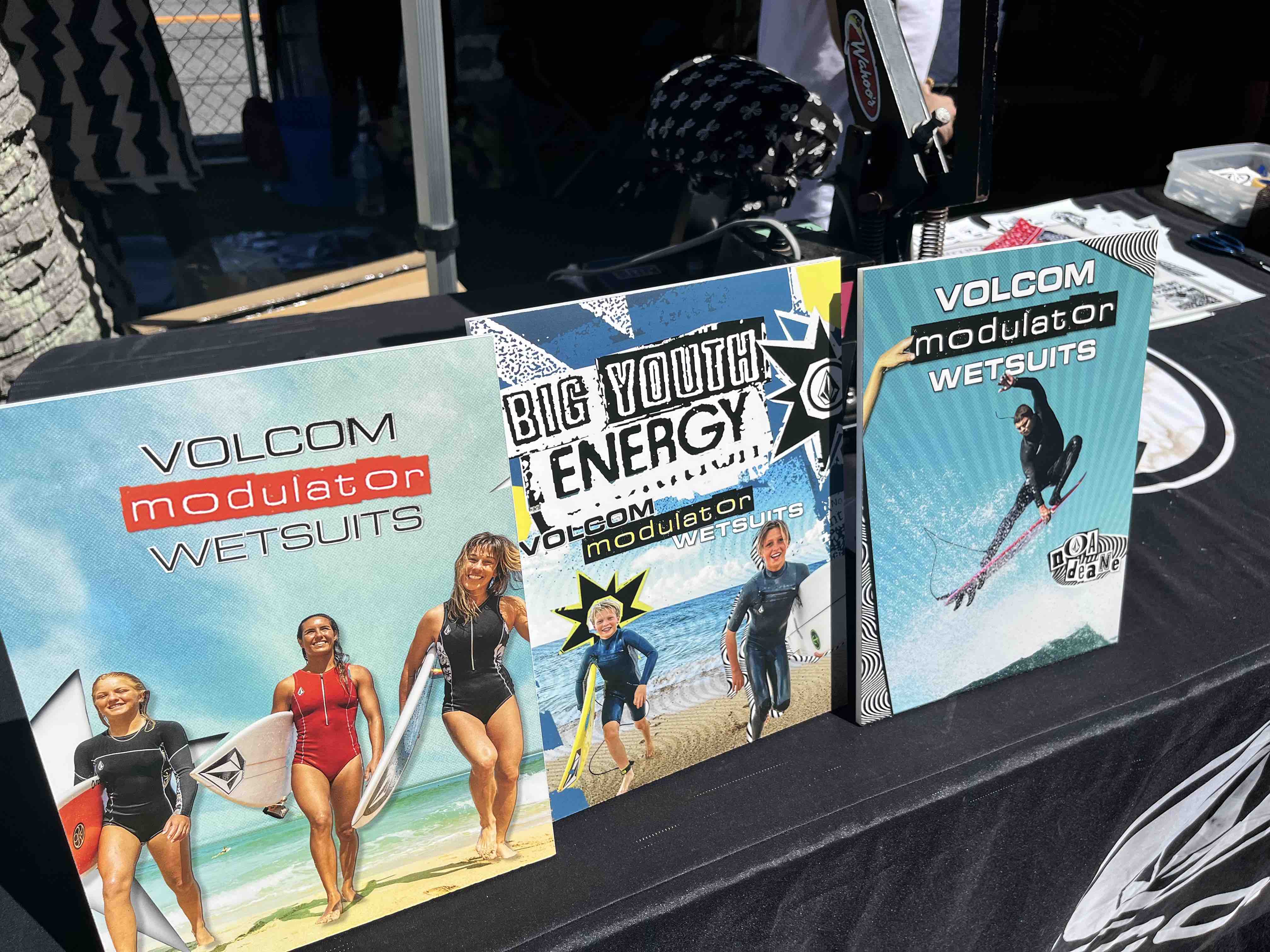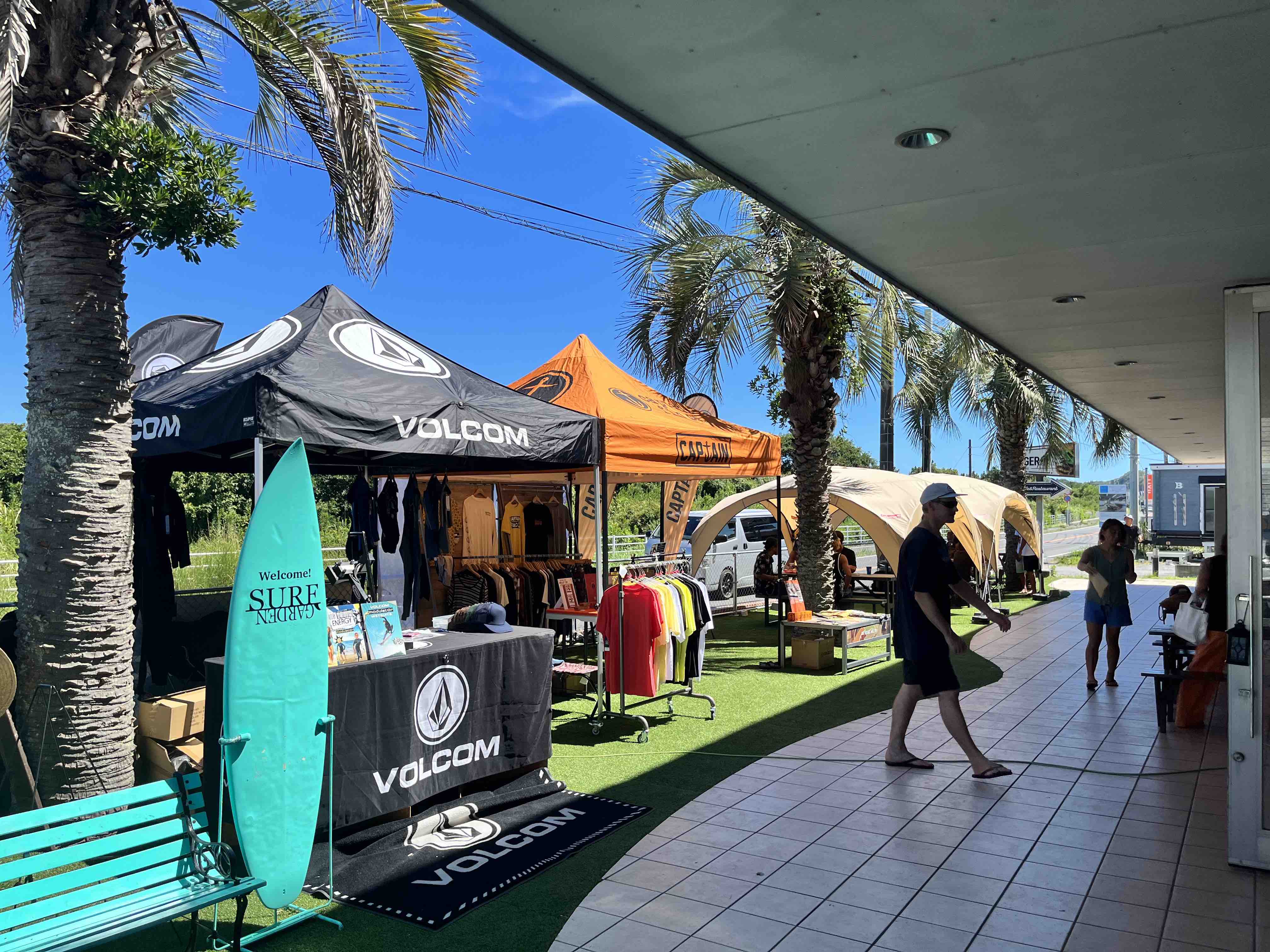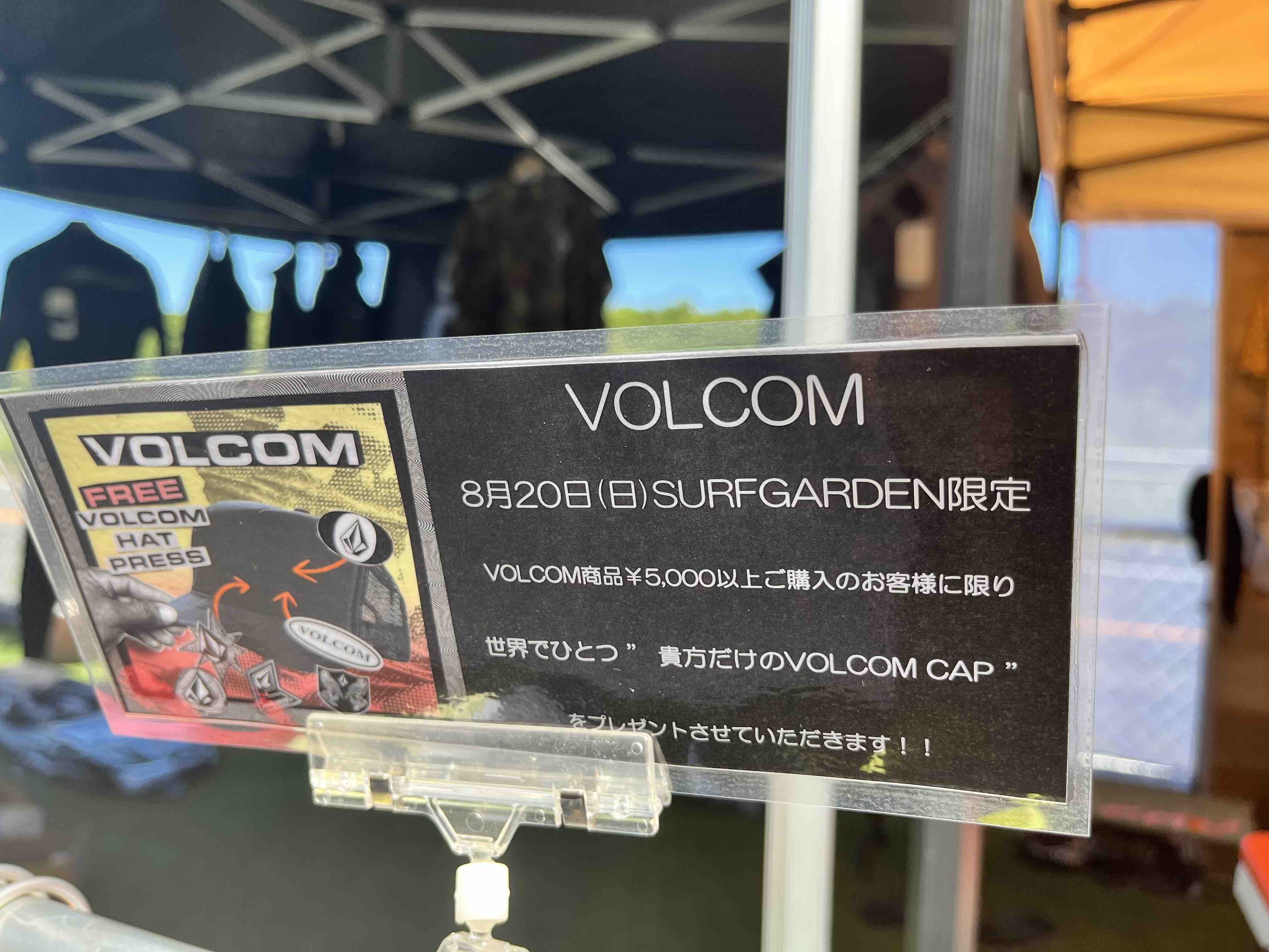 さらにSURF GARDENにはVOLCOMブースとCaptain Finブースが設置され、VOLCOMブースではVOLCOMModulator wetsuitsをはじめとした最新アイテムの展示と共に、SURF GARDENにてVOLCOMバーガーをお買い上げ、またはVOLCOMアイテムをお買い上げの方を対象にオリジナルキャップを作成可能なハットプレスを開催。