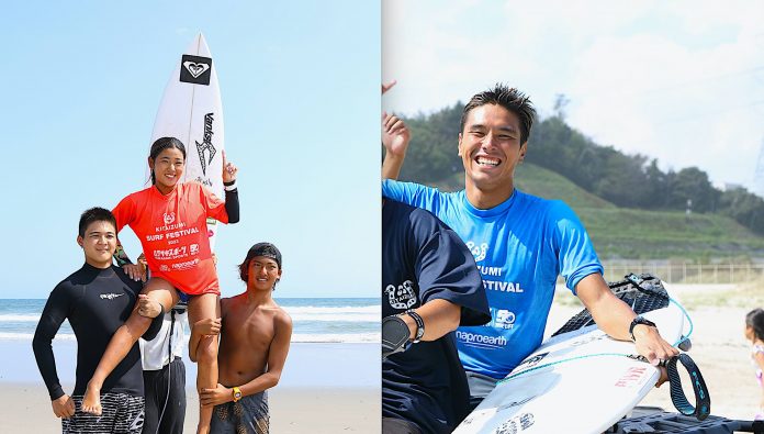 そんな思いから開催に至ったこの復興も含めたイベントには、スペシャルゲストとしてロングボード・ワールドチャンプのHurley Inglebyや元CTサーファーのJeremy Floresをはじめ、タレントの西山茉希、日本からも多くのトッププロサーファーたちが集結。