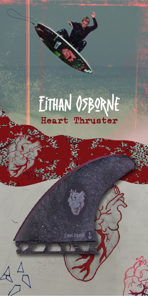 独自に設計した革新的なフィンボックス”Snap In”システムを開発して話題沸騰中のCaptain Finより、世界的トッププロサーファーであり、世界指折りのエアリストでもあるEithan Osborneシグネチャー・スラスターフィン”The Eithan Osborne “Heart” Thruster”モデルがリリースされた!!
