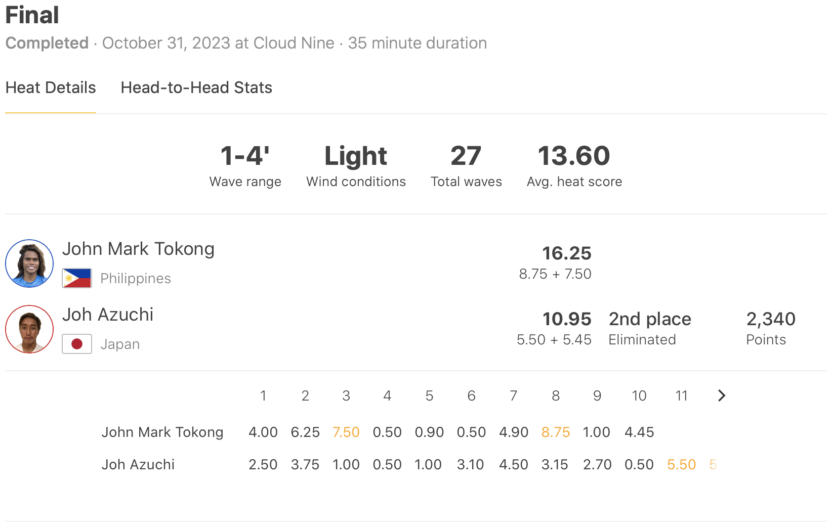 フィリピンのクラウド9を舞台に開催されていたQS3000″Siargao International Surfing Cup”が現地時間と日本時間の11/1(水)に無事ファイナルまでの全スケジュールを消化。