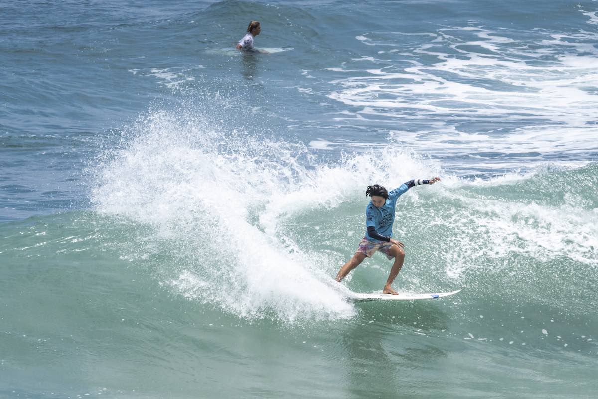 ヒート10では岡野漣と小野里弦が同じヒートで戦うこととなり、メキシコのLucas Senkbellがトータルスコア11.60ptをまとめてトップを独走する展開の中で2位争いを強いられることとなり、タイミングを合わせるのが非常に難しいバックウォッシュを味方につけた小野里弦が僅か0.10pt差でメインラウンド3のヒート9へと駒を進めた!