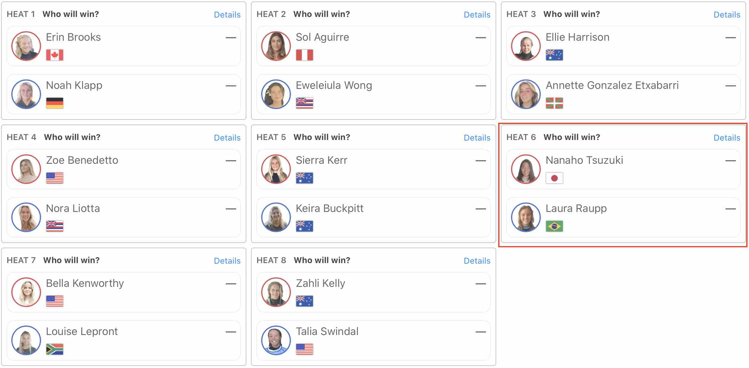 注目の日本人選手たちの活躍は、ヒート5で2023年WSJプロジュニアワールドチャンプに輝いているJarvis Earleと対戦した矢作紋乃丞と、ヒート8でJoel Vaughanと対戦した岩見天獅が惜しくもここで敗退。
