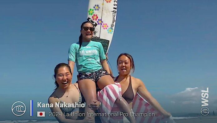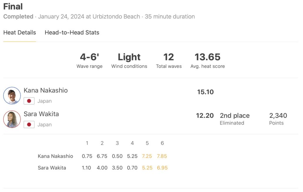 オンショアの影響を受けたセットで頭前後のコンディションの中、注目の日本人選手活躍は、WOMENファイナルで7.25ptと7.85ptという2本のハイスコアをまとめて脇田紗良を抑えた中塩佳那が見事優勝を果たした!